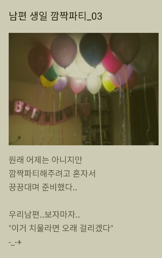 반대로 나는 이벤트 해주는 걸 좋아한다. 이벤트를 준비하는 과정이 너무 즐겁고 내 이벤트로 인해 놀라워하며 기뻐하는 모습들을 기대하는 쾌감이 너무 좋아서 남편에게 자주 해주었는데 막상 남편은 이벤트를 받고 나면 시큰둥하다. 쩝. 그러다 보니 가끔은 서운하기도 하고 서러운 마음이 든 적도 있다.