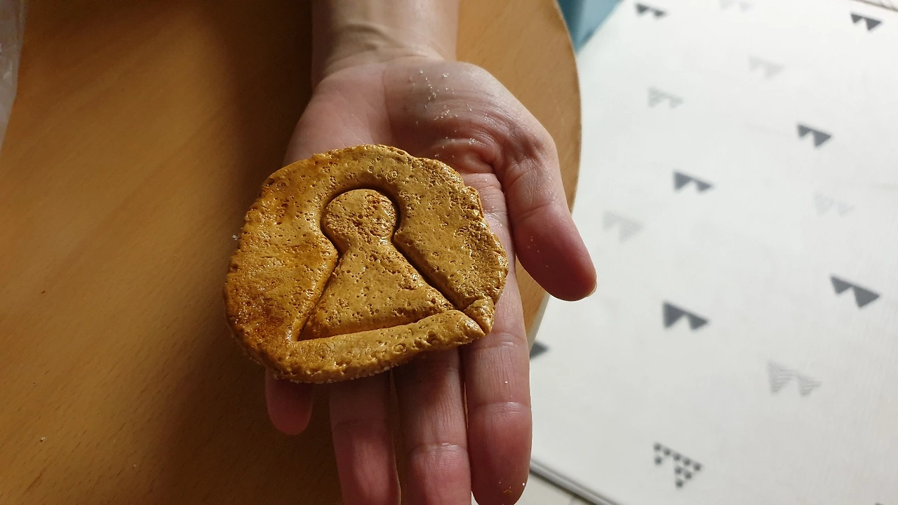 설탕과 소다를 준비하고 달고나를 만들어 보았다. 초등학교 때 해보고 정말 오래간만에 해보는 달고나였다. 설탕을 약불에 녹이다가 갈색이 되면 소다를 나무젓가락 끝에 살짝 묻혀서 빙빙 돌린 후 부풀어 오르면 설탕을 뿌린 바닥판에 놓고 5초 후 눌러 모양판을 찍으면 끝.