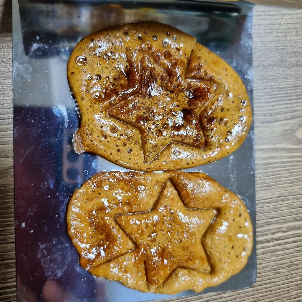 처음과 두 번째는 망쳤지만 세 번째는 성공했다. 진짜 황금색 달고나가 나왔다. 아이들이 어찌나 좋아하던지. 고사리 같은 손으로 열심히 모양을 뽑았지만 모두 실패. 별 한쪽이 잘라졌다, 얼굴 목이 잘라졌다며 난리를 쳤다. 아이들은 비록 실패는 했지만 맛있는 달고나 조각들을 맛있게 먹을 수 있으니 다시 기분이 좋아졌다.