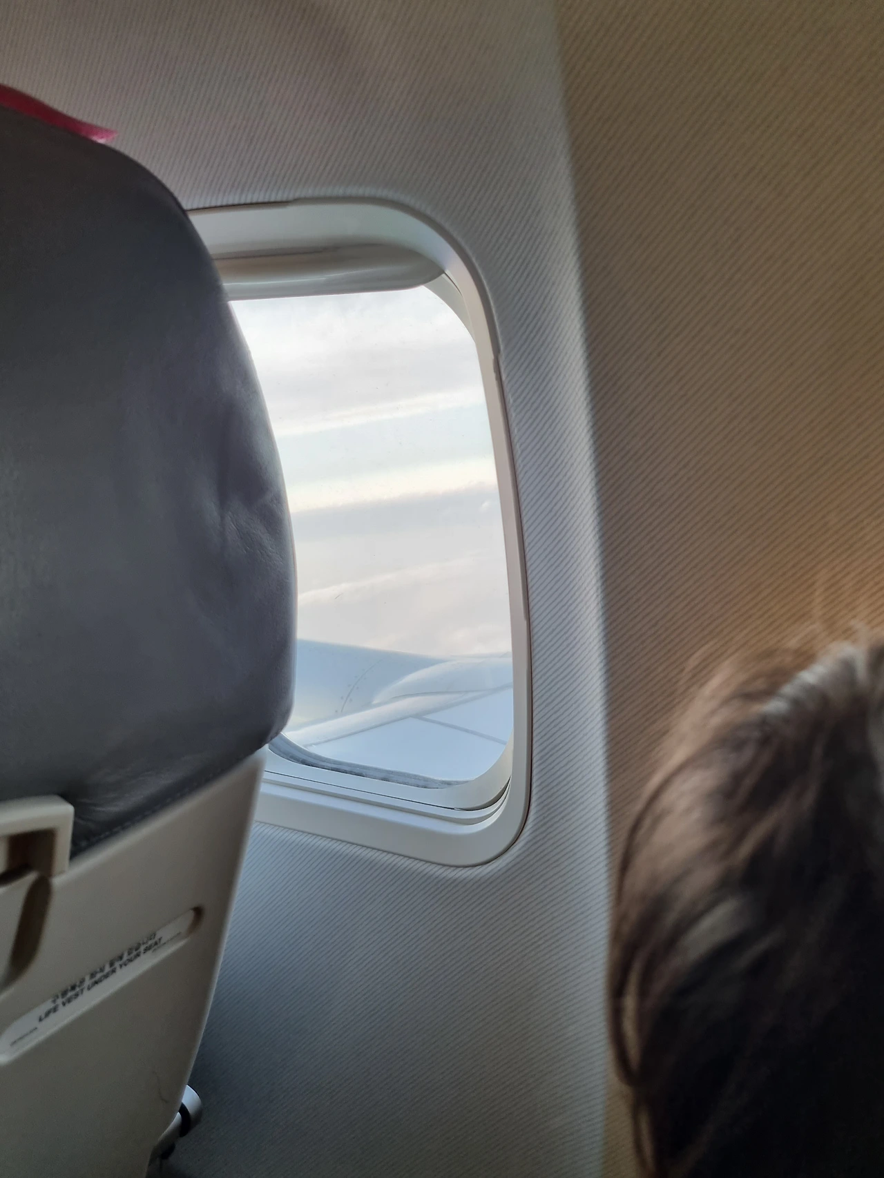 드디어 비행기에 탑승했다. 탑승하자마자 남편과 나는 너무나 창피했다. 특히 나는 엄청나게 힘들었다. 좌석 세 개가 붙어 있는 쪽에 나, 딸, 아들이 앉았는데 아들이 창가 쪽이었다.