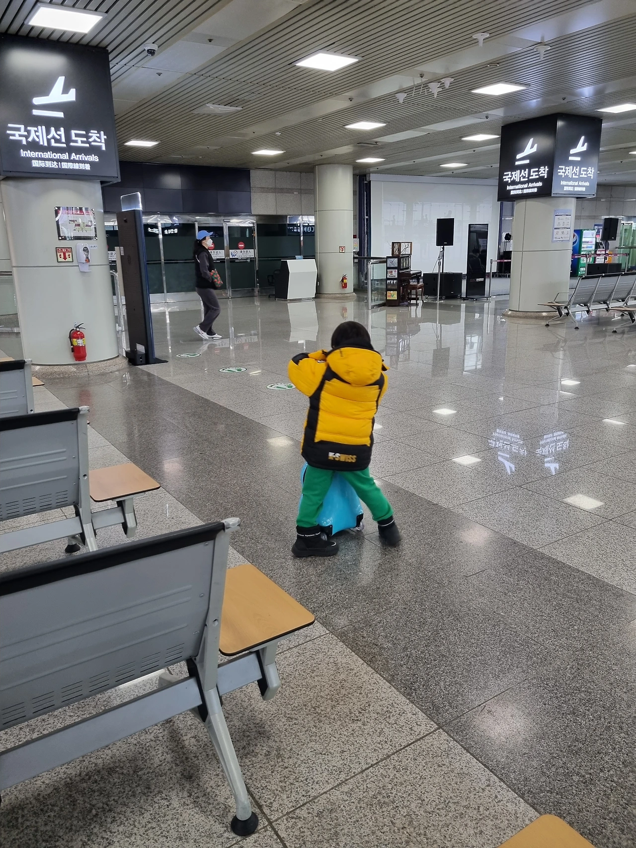 아들의 자리 앞좌석에 있던 젊은 청년한테 너무나 미안했다. 계속 발로 차고 두드리고 시끄럽게 떼를 쓰는 아들로 인함이었다. 하지 말라고 계속 말해도 잠시뿐 아들은 가만히 있질 못했다.