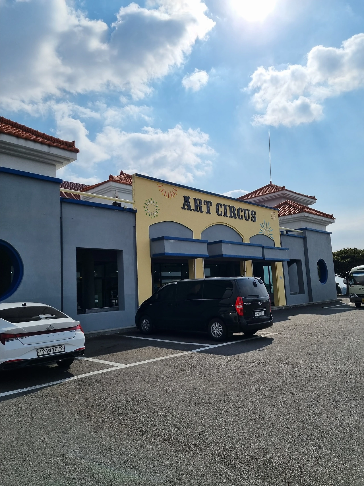 아들과 공연장으로 다시 들어가자 구모 양의 원형 철창으로 만들어진 좁은 곳 안에서 오토바이 세대가 이리저리 회전을 하고 있었다. 우와, 아들이 보자마자 눈이 휘둥그레 해졌고 그 5분 동안을 아들은 초집중을 하며 좋아했다. 공연 내내 사진 촬영은 금지라 찍지 않고 건물 밖 입구 사진만 기념으로 찍었다.