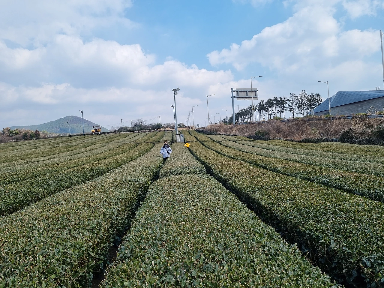 오설록 옆 제주 이니스프리에는 녹차밭이 있었는데 사람들 대부분이 그곳에서 사진을 찍고 있었다. 우리도 사진을 찍으려고 폼을 잡고 있으려니 둘째가 녹차밭 좁은 길 사이를 열심히 뛰어다닌다. 그러다가 동생을 잡으러 가는 첫째, 다시 도망가는 둘째. 둘이서 그곳에서 열심히 뛰어다녔더랬다.