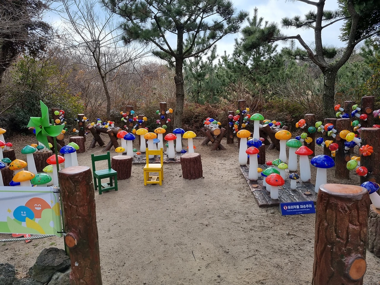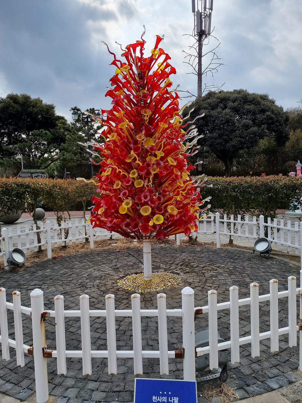 제일 먼저 간 곳은 유리의 성. 유리로 만든 수많은 작품들이 실외 공간에 전시되어 있었다. 엄청 넓은 곳이었는데 볼거리가 정말 많았다. 중간에 편의점처럼 생긴 공간이 있었는데 그 공간 근처에 다리로 연결된 아래 부분에 연못이 있었다. 연못을 내려다보며 아이들이 물고기가 있단다. 진짜 커다란 잉어들이 우리를 보고 엄청나게 모여들었다.