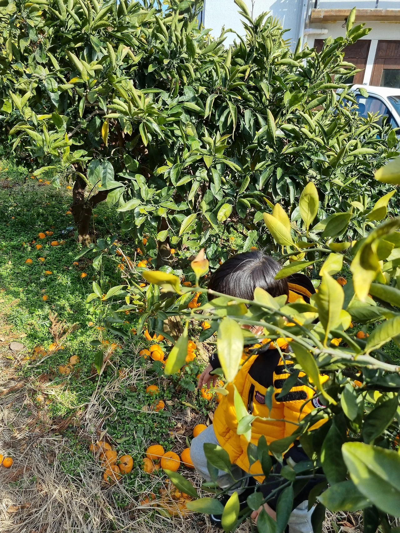 그래서 아이들과 펜션 입실을 기다리며 귤 따기 체험을 했다. 크고 이쁘게 생긴 귤을 서로 따겠다며 아이들은 귤을 따고 또 따며 정말 재미있어했다. 사실 다음날 귤 따기 체험을 하러 갈 참이었는데 아싸 돈 굳었다. 흐흐.