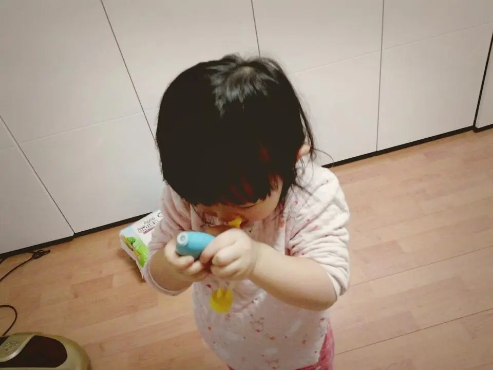 그런데 처음으로 걸린 감기에 처음으로 먹는 것이라 그런지 약도 잘 안 먹으려고 하고 코 뻥이라고 한쪽 끝을 코에 넣고 다른 쪽 고무패킹을 눌러주며 콧물을 빼주는 도구도 사용하려고 하는데 그것도 딸아이는 완강히 거부했다. 그 도구가 아마도 낯설고 무섭게 느껴졌을 것 같다.