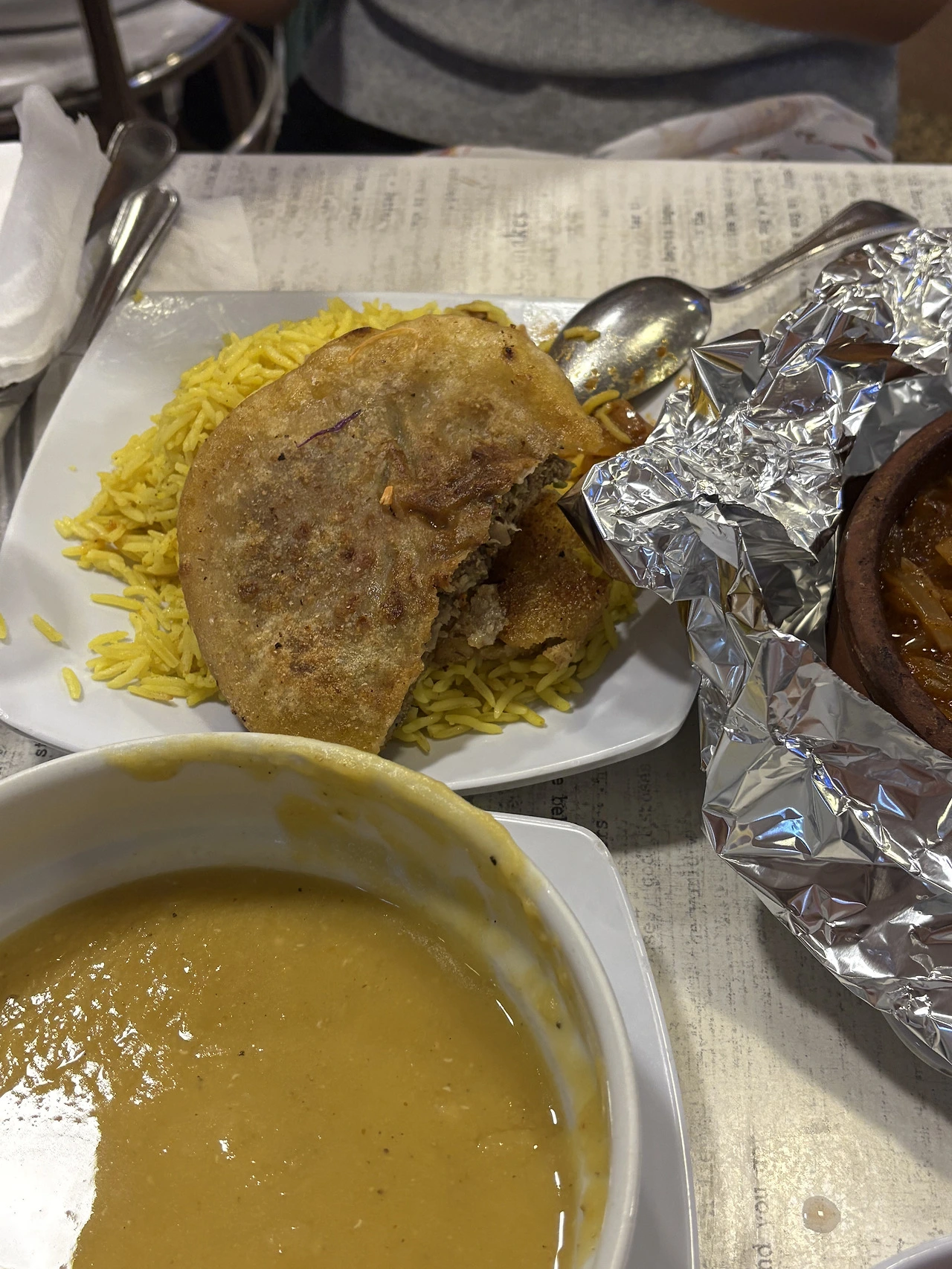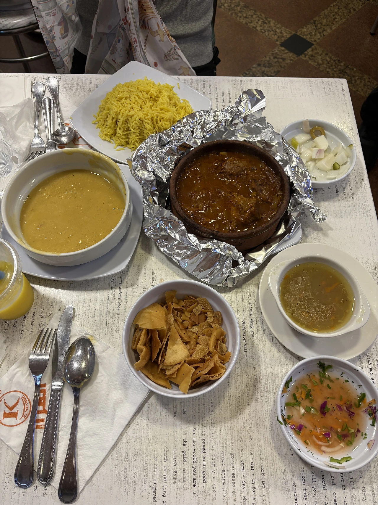 소고기 타진과 렌틸콩 수프, 그린샐러드 뭐 이렇게 시켰던 것 같다.
