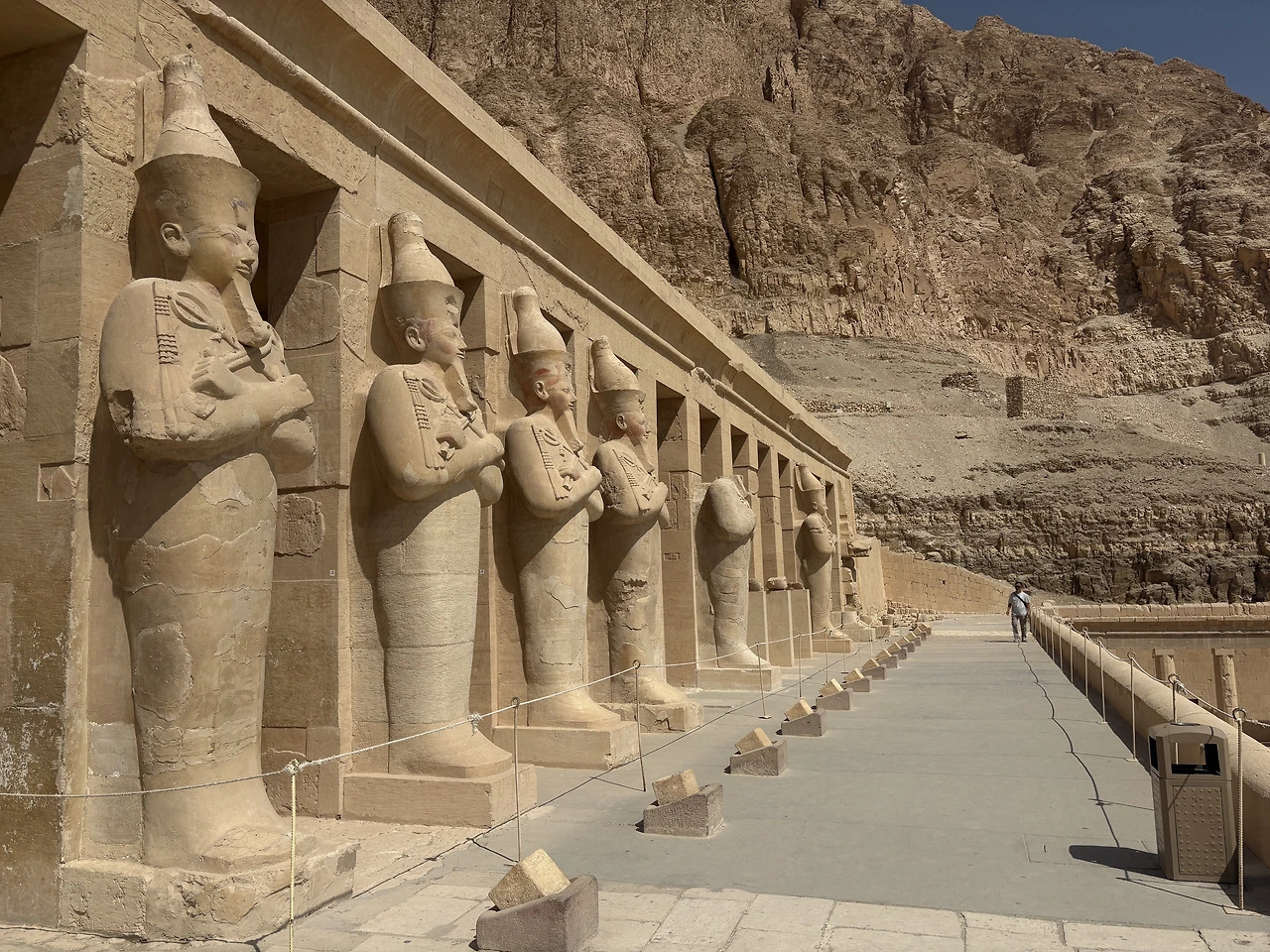 하트셉수트 장제전은 '사막의 절벽과 완벽히 하나가 된 신전'으로도 유명한데, 단순한 무덤이 아니라 여왕의 신격화와 정당성을 상징하는 거대한 예술적 선언문이라고도 볼 수 있다.