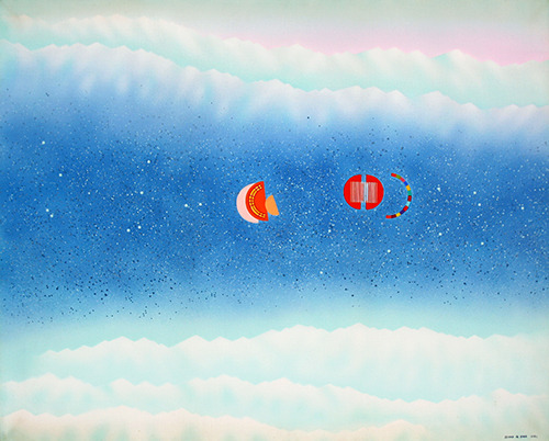 탄생 100주년 기념으로 열렸던 대규모 개인전의 타이틀이기도 했던 [지구 반대편으로 가는 길] 작품은 우주에 대한 작가의 관심이 드러나기 시작한 시기의 작업입니다. 여성과 대지 시기에 관심을 둔 기본 개념이 땅이 었다면, 시간이 갈 수록 그 시점이 하늘로 옮겨가는 것을 확인 할 수 있습니다.