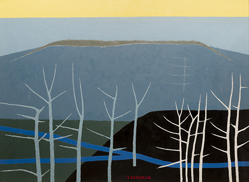 고향의 자연에서 얻은 소재를 캔버스에 옮기는데 50년대 후반의 초기 작품에선 단순화된 선, 색면의 대비와 두터운 구획선을 구사하며 화면 전체가 강렬한 원색으로 표현되던 것이 시간이 흐르며 점차 엄격한 구획은 사라지고 색의 흐름이 유기적으로 구성되거나 부드러워지는 것을 직접 확인할 수 있습니다. 질서정연한 화면, 기하학적인 형태로 안정되어 가는 화면이랄까요. 개인적으로도 참 좋아하는 작품들입니다. 후반부의 작품에서는 색상 마저도 부드러워지는 것을 발견하고 시간의 흐름에 따른 감정의 변화를 느껴보기도 합니다.
