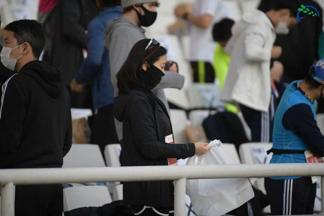설레는 마음을 안고 경기장에 도착해 손 소독을 마치고, 지정된 자리에 미리 세팅되어 있던 물품 패키지를 확인했다. 내 배번은 '5조-701번'으로, 7번 레인의 첫 번째 주자였다. 배번이 랜덤으로 배정되는 마라톤 대회에서, 레인의 스타트를 끊고 잠시나마 넓은 트랙을 독주하는 1번 주자로 달릴 기회가 내 생애 몇 번이나 찾아올까. 내가 운이 그리 나쁘진 않은가 보다. (물론 이 생각은 머지않아 보기 좋게 산산조각 났지만.)