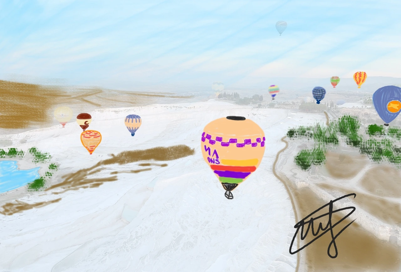 나에게는 파묵칼레의 일정이 가장 인상 깊고 즐거운 시간이었는데, 이유는 여러 가지가 있겠지만 가장 큰 이유 중 하나는 카파도키아에서 실패한 열기구 투어를 이곳에서 할 수 있었기 때문일 것이다. 열기구 투어는 관광객의 선택이 아니라, 날씨가 우리를 선택해 주어야만 가능하다고 할 정도로 운이 좋아야 가능한 것이라고 한다. 새벽 4시에 모여 열기구에 탑승하는 그 순간까지도 가능 여부를 확신할 수 없었던 가슴 쫄깃해지는 이 투어는 누군가 내 뇌에 무슨 짓을 하지 않는 이상 절대 잊을 수 없는 경험이 되었다.