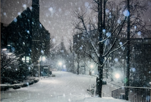 눈이 펑펑 쏟아지는 이 작품은 학교를 사랑하지 않으면 절대 찍을 수 없을 것 같아 골랐다. 교육관 수업을 마치고 밤에 약학관을 지나면서 걷게 되는 길이란 걸 글을 쓰다 알았다. 눈이 와 있는 걸 본 적이 없어서 여기는 어딜까 유심히 보다 그걸 깨닫고 깜짝 놀란 거다. 인적이 드문 시간, 눈을 맞으며 이 사진을 찍으셨을 것 같은데 언제 어떤 상황 어떤 옷차림으로 그 자리에 계셨을까 상상해보게 된다. 자세히 보고 있으면 정말 지금 눈이 오는 것 같은 착각이 들기도 해서 신기한 작품.