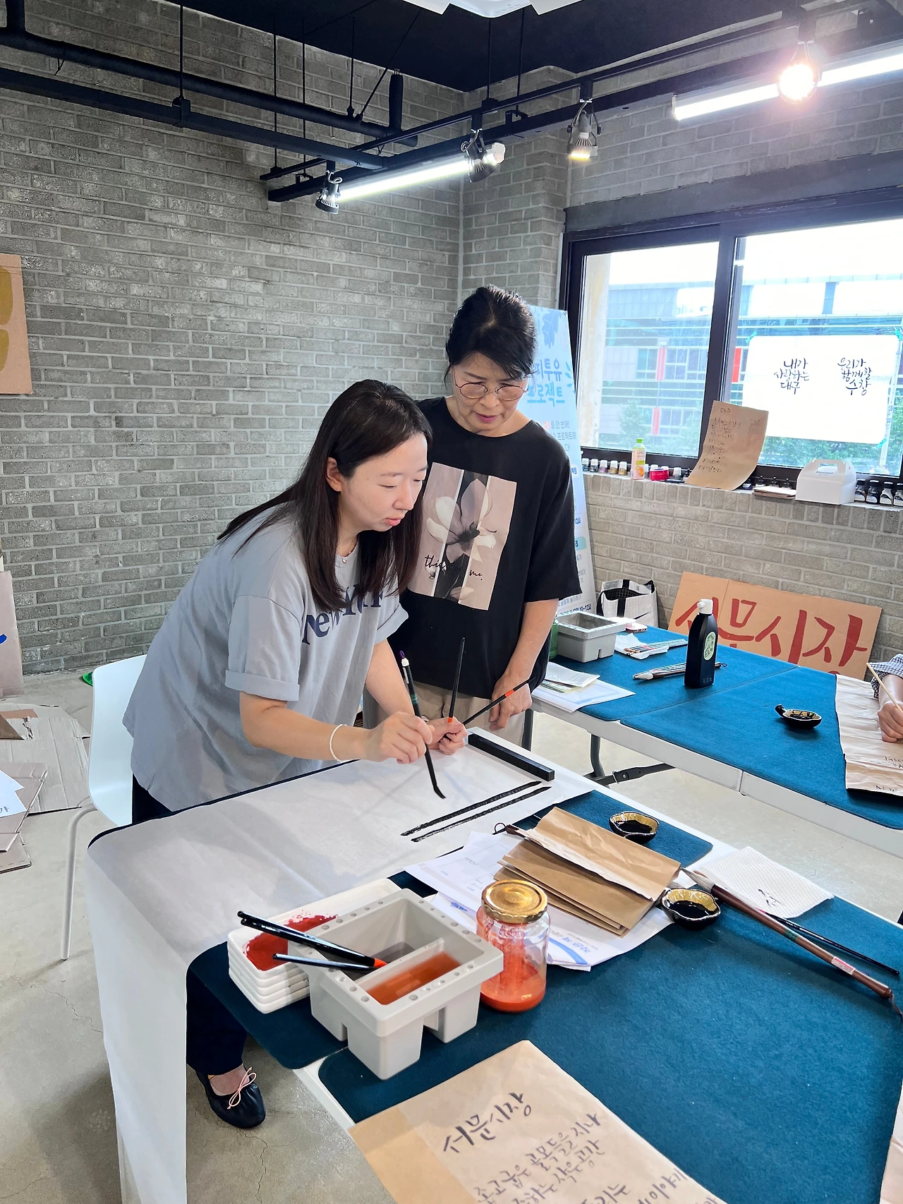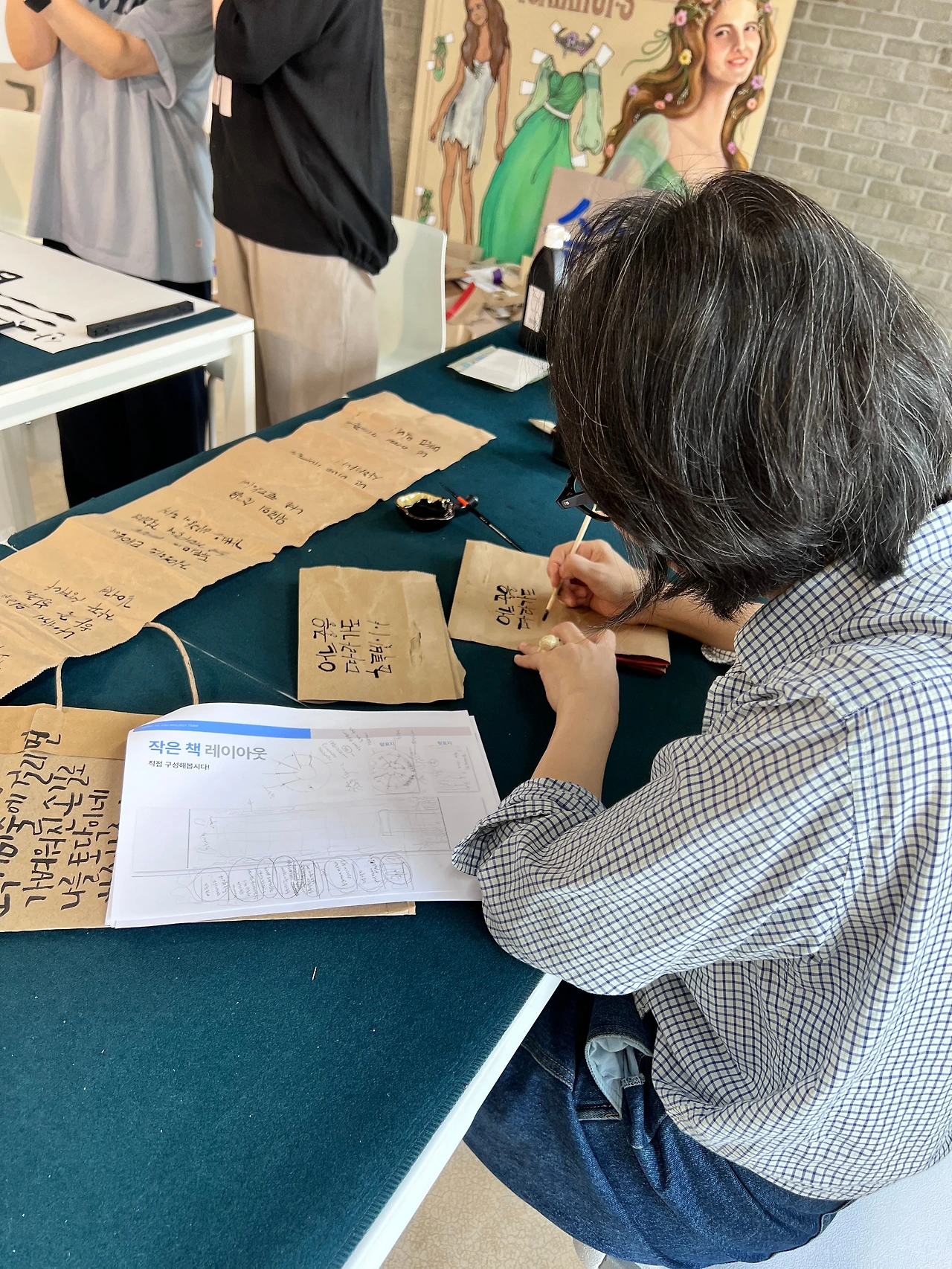 직접 책 내지에 쓰기에 도전했다. 시민 멤버들은 자신의 책에 들어갈 글씨체를 미리 연습해 오시기도 하고, 내지 사이즈에 맞게 시의 길이를 조절해오시기도 했다. 엄청나게 집중하셔서 각자의 작품 활동에 몰입하셨기에 따로 설명을 더 한다거나 조언을 할 필요가 없을 정도였다.
