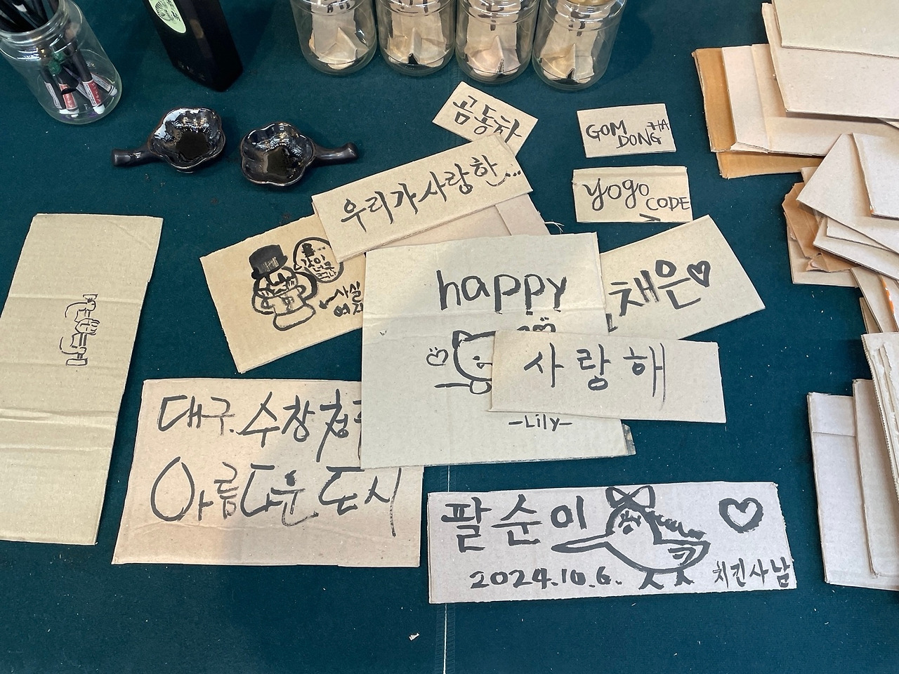 마지막 날이었던 일요일엔 비가 내렸다. 하지만 많은 시민들이 오전부터 밤까지 해피투유 랩실에 들러 캘리활동에 참여해주셨다.