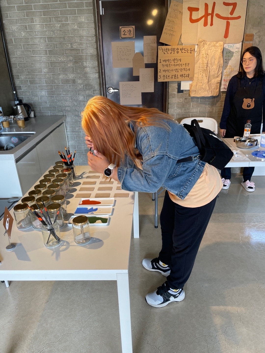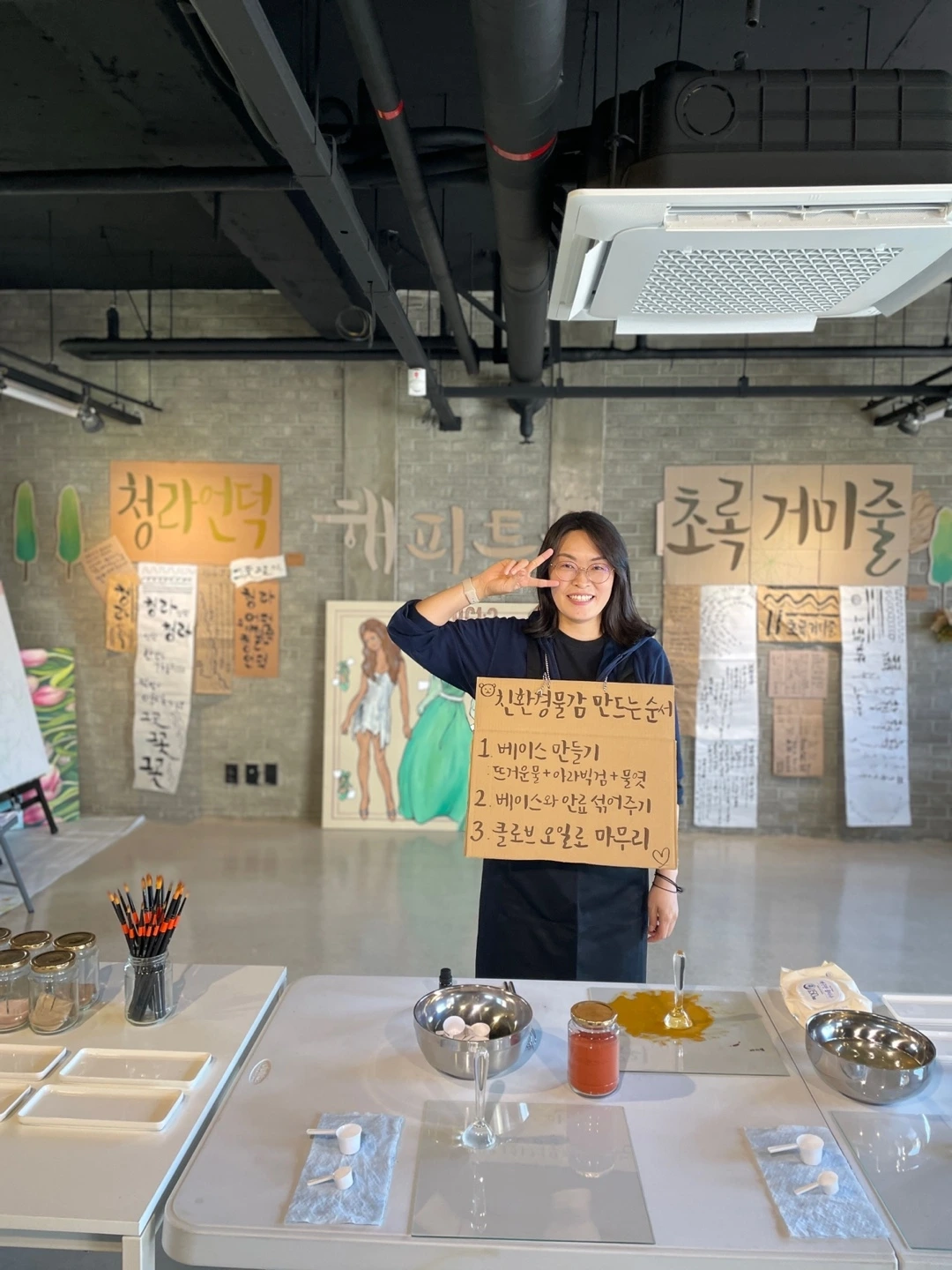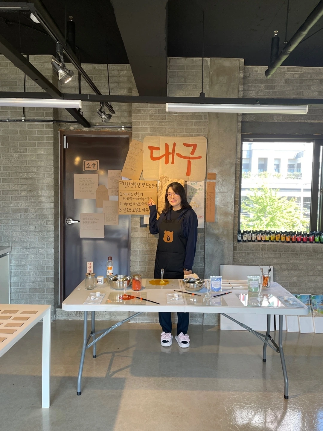 오랜만에 대구로 향했다. 친환경 물감 체험부스를 맡아서 진행하기로 했기 때문. 오전에 전시를 보러 오신 분들은 조용하신 분들이 많았다. 랩실에 들어오시면 반갑게 인사하고 멀리서 관람하시는 분들께는 슬며시 다가가 체험을 권했다.