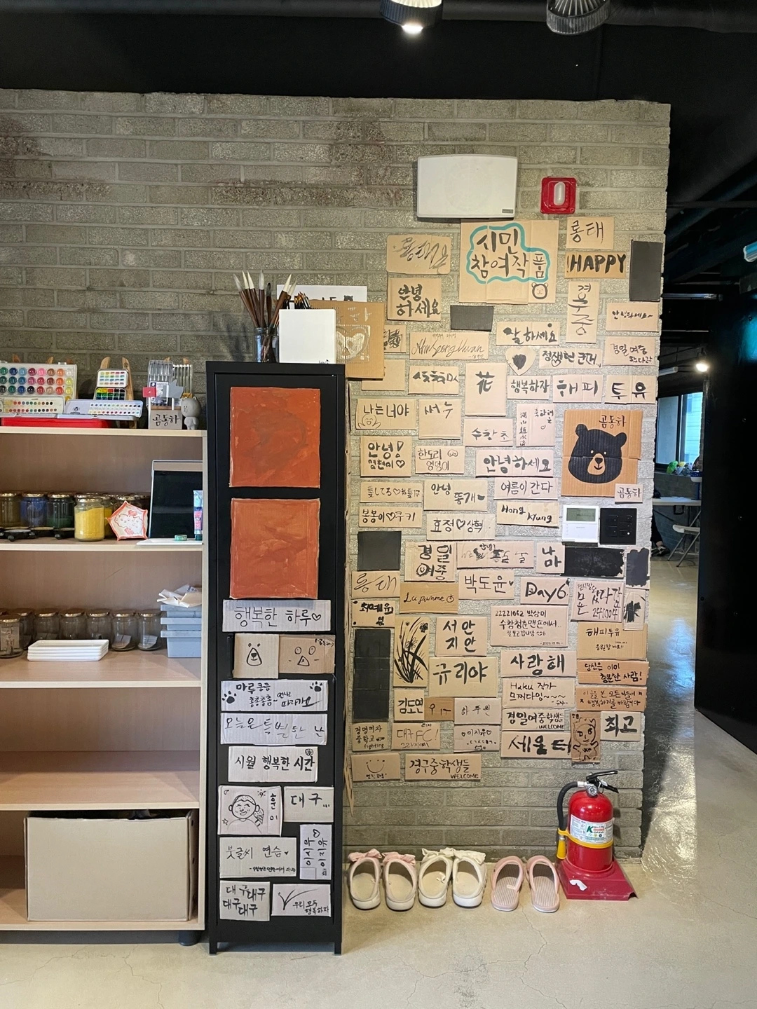 요고코드님과 히르꼬 님은 시민분들이 남겨주신 작품을 벽면과 캐비닛에 멋진 글씨들을 다다닥 붙여 전시해 주셨다. 아래 영상에서 확인!