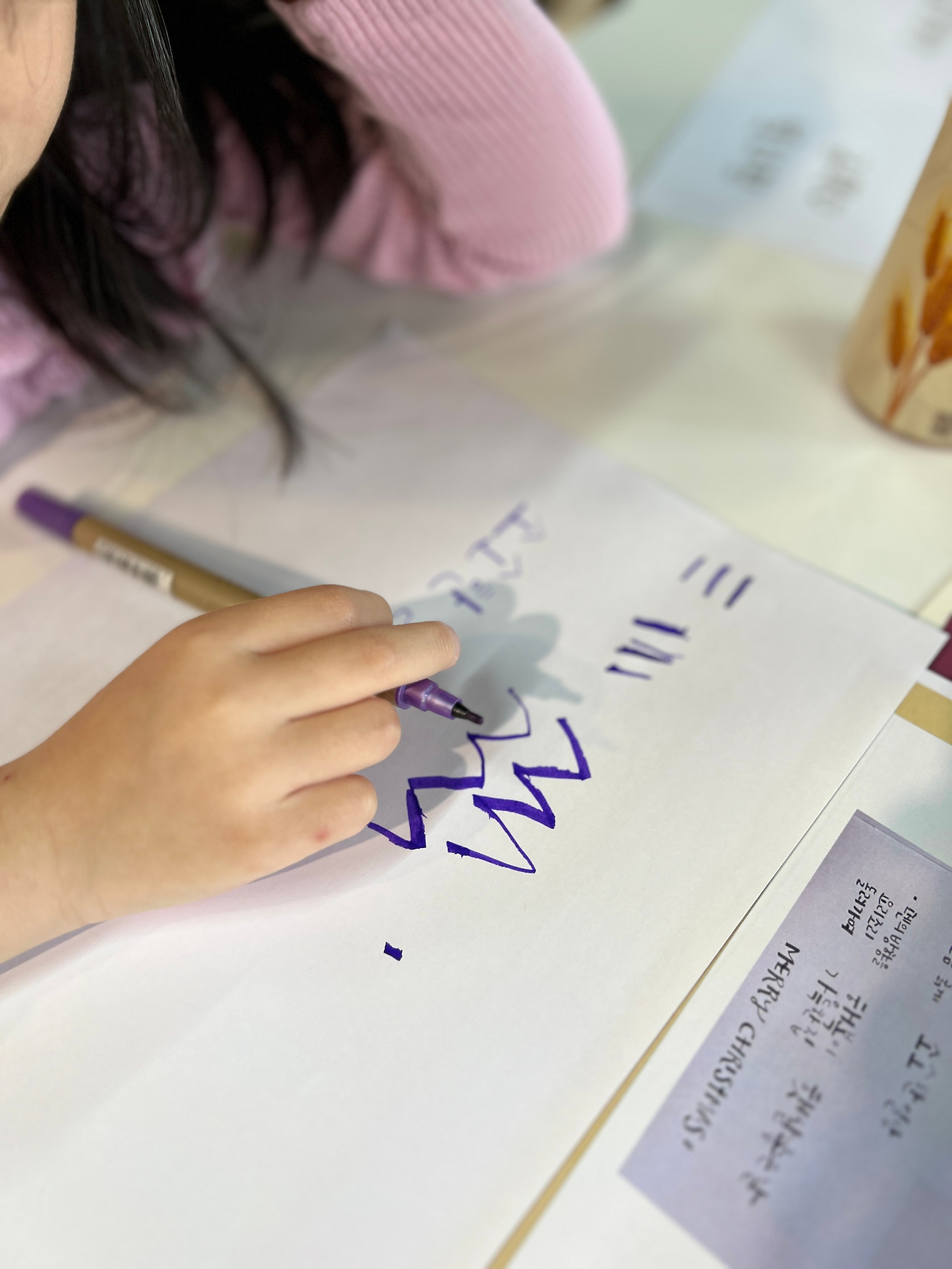 플라스틱 볼 안에 한지를 구겨 넣어 입체적인 오너먼트도 만들어보았다. 글자가 모양이 밖으로 나오게 잘 구기는 것이 쉽지 않다며 고민하시는 모습이 신나 보였다.
