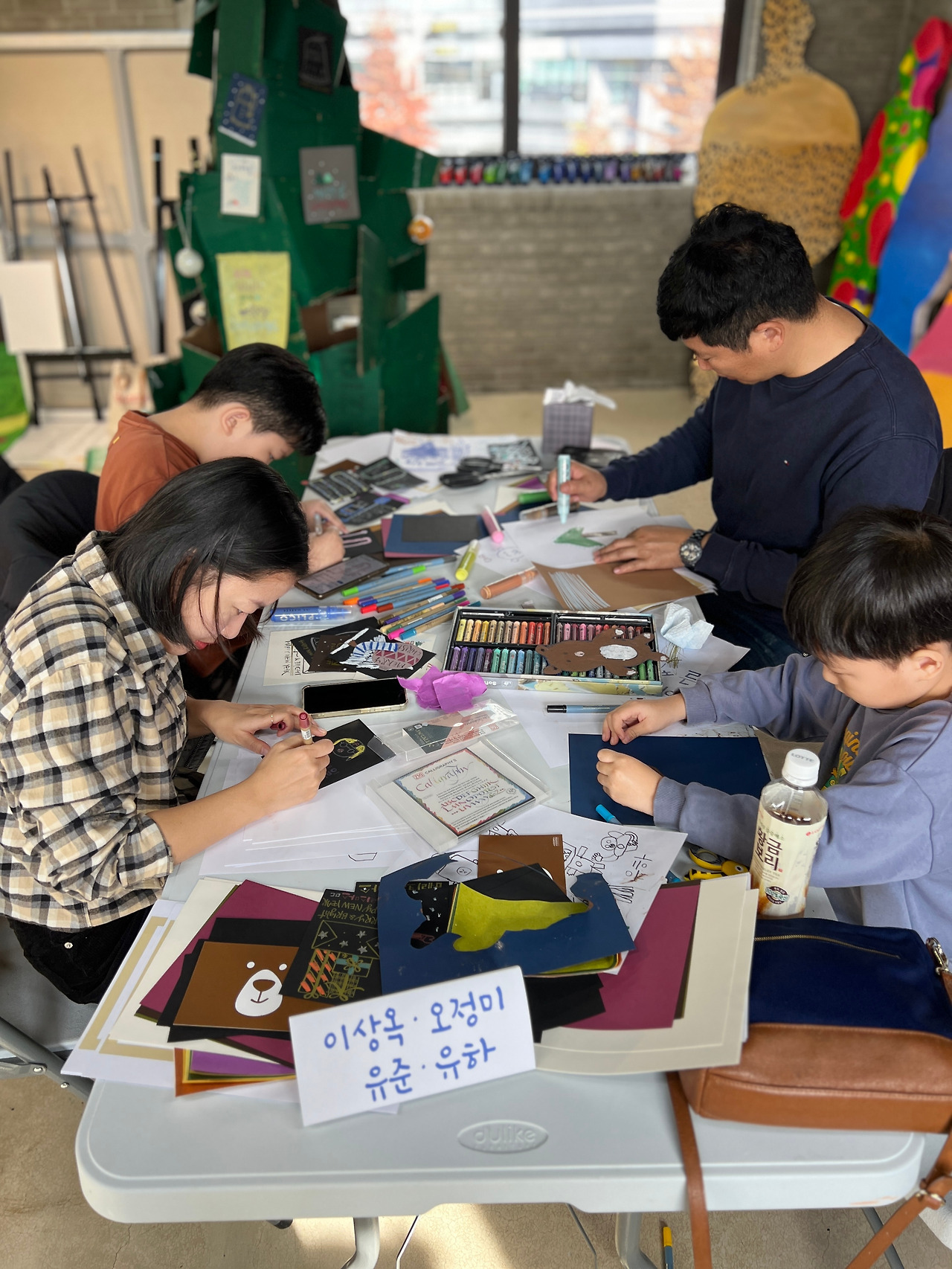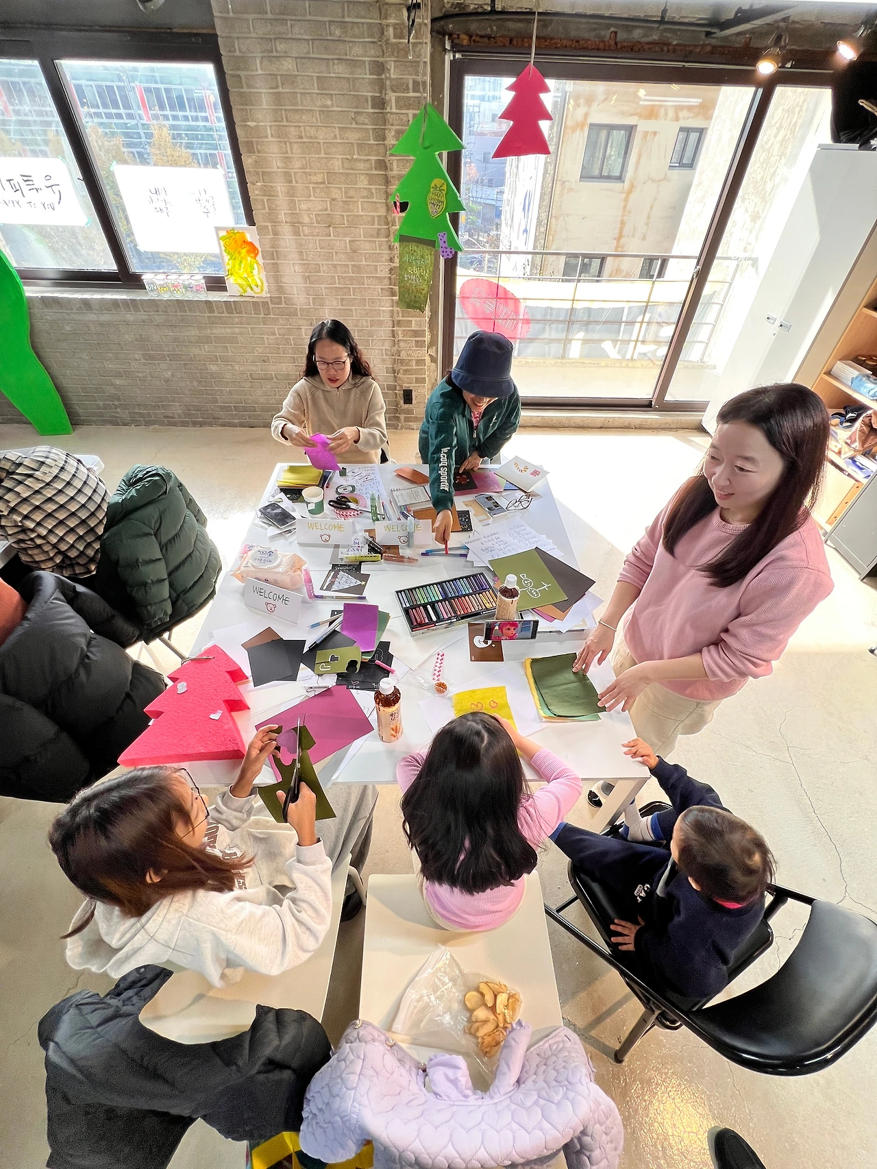 트리 장식을 마친 후, 이번 프로젝트에 관한 소감을 나누는 시간을 가졌다. 히르꼬님은 한 분 한 분 부드럽게 부르시며 시민멤버들이 즐겁게 나눌 수 있도록 유도하셨다. 부모님과 함께 참여한 남자아이는 ‘활동에 너무 집중해서 재밌었다’라고 이야기했고, ‘같이 온 사촌동생이 잘 참여해 주어 너무 행복했다’는 여자아이도 있었다. 예전에 크리스마스 카드 만들던 기억이 나서 참 즐거웠다는 분, 함께 해주신 가족멤버들 보기가 좋았다는 분, 캘리를 처음 해보았지만 너무 재미있어서 호기심이 생기셨다는 분도 계셨다.