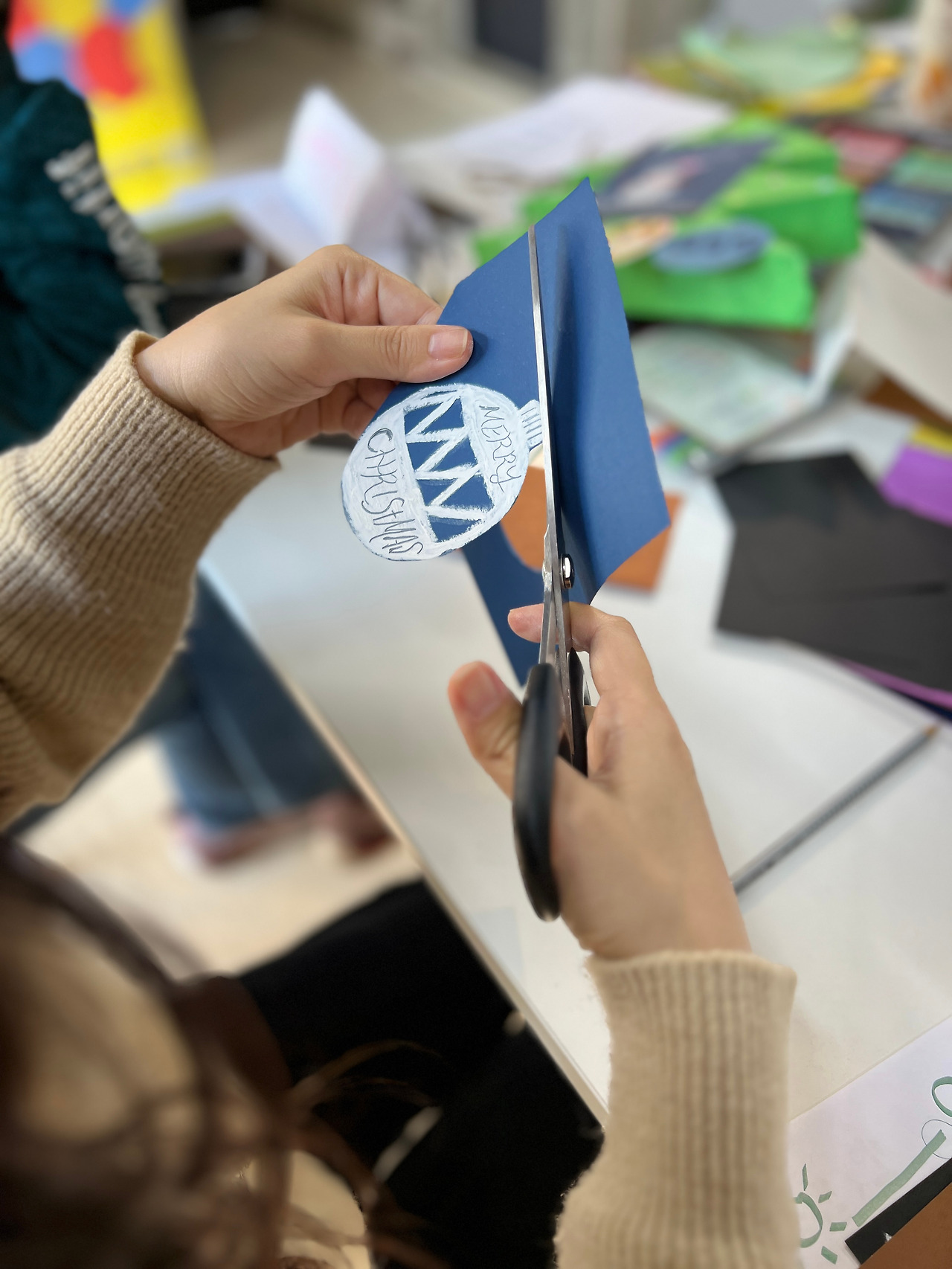 오너먼트는 장식품을 말한다. 이번 프로젝트에서 장식할 대상은 크리스마스트리! 히르꼬님은 크리스마스 시즌에 어울릴 만한 다양한 엽서나 귀여운 오너먼트 그림을 준비해 오셔서 시민멤버들께 선보이셨다. 오일 파스텔과 컬러캘리펜으로 미리 만들어진 작품들을 감상하면서 시민멤버들은 자신의 작품을 구상하고 스마트폰 검색으로 자기에게 필요한 이미지들을 수집하였다.