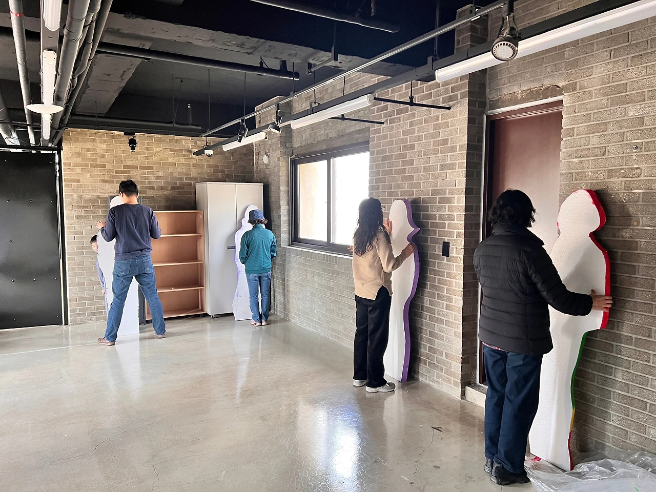 지난 시간에 색칠해 둔 등신대가 잘 건조되었기에 요고코드 작가님과 등신대로 공동체 놀이를 해보았다.