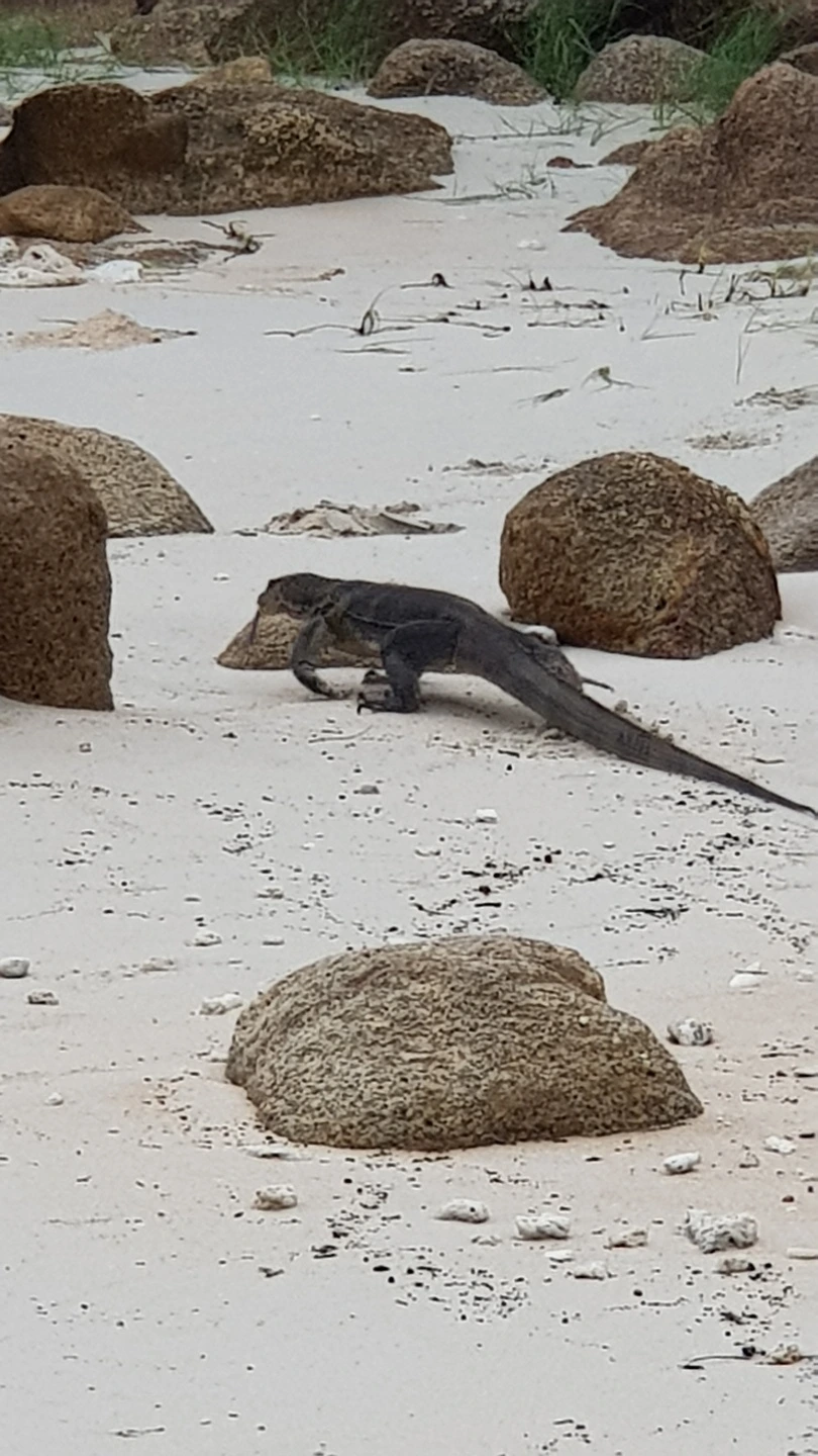 마지막으로 가장 기억나는 건 딱 하나 고르라면... 두 사람 다 '도마뱀!'이라고 할 것 같다! 하루는 바닷가에 놀러를 갔는데 내 눈에 이상한 생명체가 포착되었다. 저 멀리 50m 정도 떨어진 곳에서 어기적어기적 걸어가고 있는 길~~~ 다란 도마뱀이었다! 남편에게 보라고 했더니 갑자기 남편이 영상을 찍으면서 그쪽으로 이동하려고 했다. 안 된다고 말렸더니 더 즐거워하면서 다가갔다. 도마뱀은 우리가 다가가자 아주 조금 속도를 내서 시원한 바위 위로 올라서고 이내 사라졌다. 혀를 내민 길이까지 합하면 족히 2~3m는 될 것 같은 녀석이라 너무 징그럽고 겁이 났는데 남편은 너무 좋아했다. 동물 다큐를 좋아하는 남편은 정말 그 도마뱀을 데려오고 싶었단다.