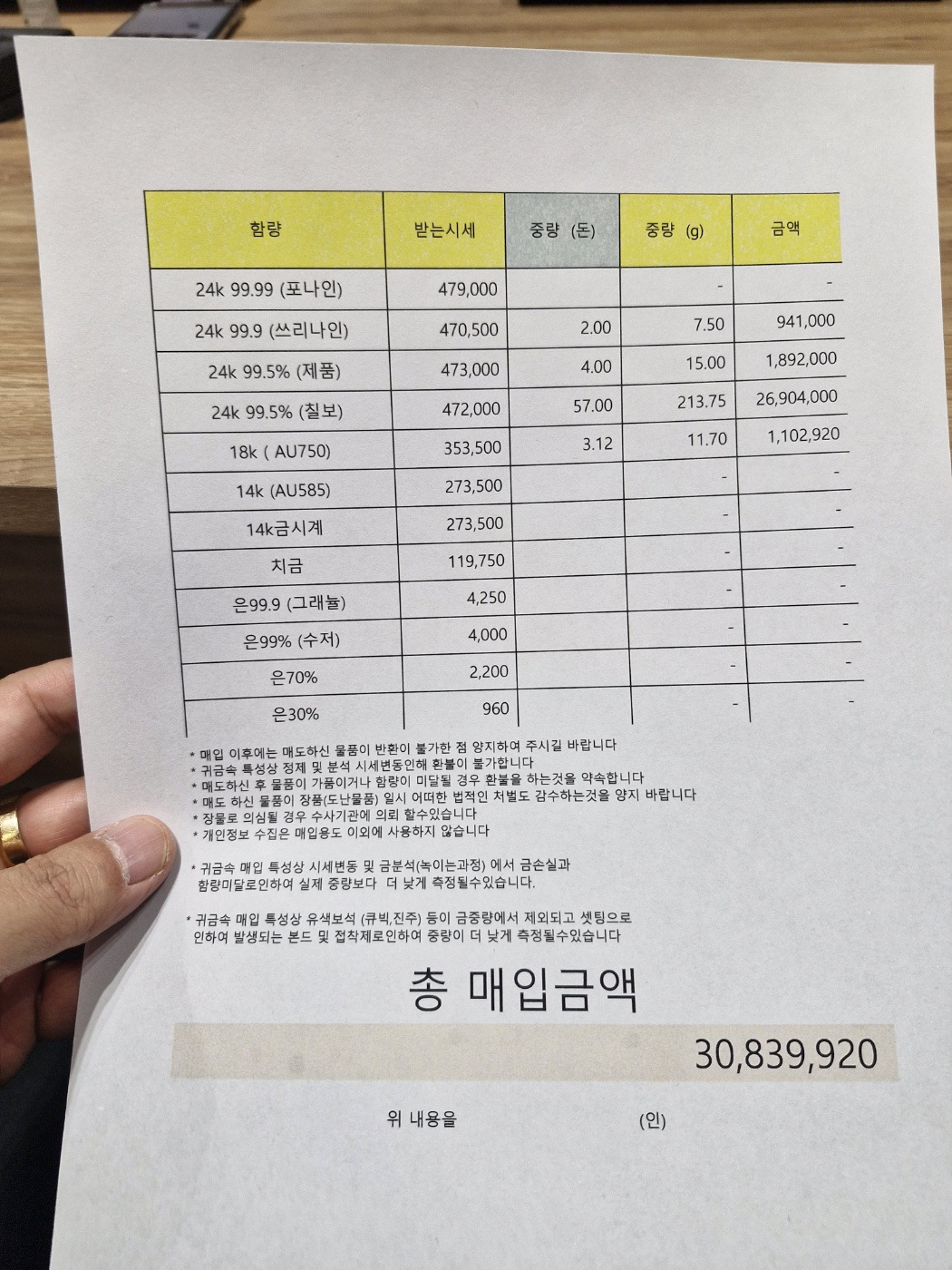 그게 1월 중순이었다. 3천만원이 넘는 돈을 받았다. 느닷없이 큰 돈이 생긴 날이었다. 금으로 두었다면 만져지지 않았을 돈이었다. 돈이 되는 금과 진짜 돈의 체감은 아주 달랐다. 그렇게 판 돈은 통장에 고스란히 들어갔다.