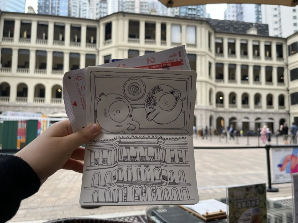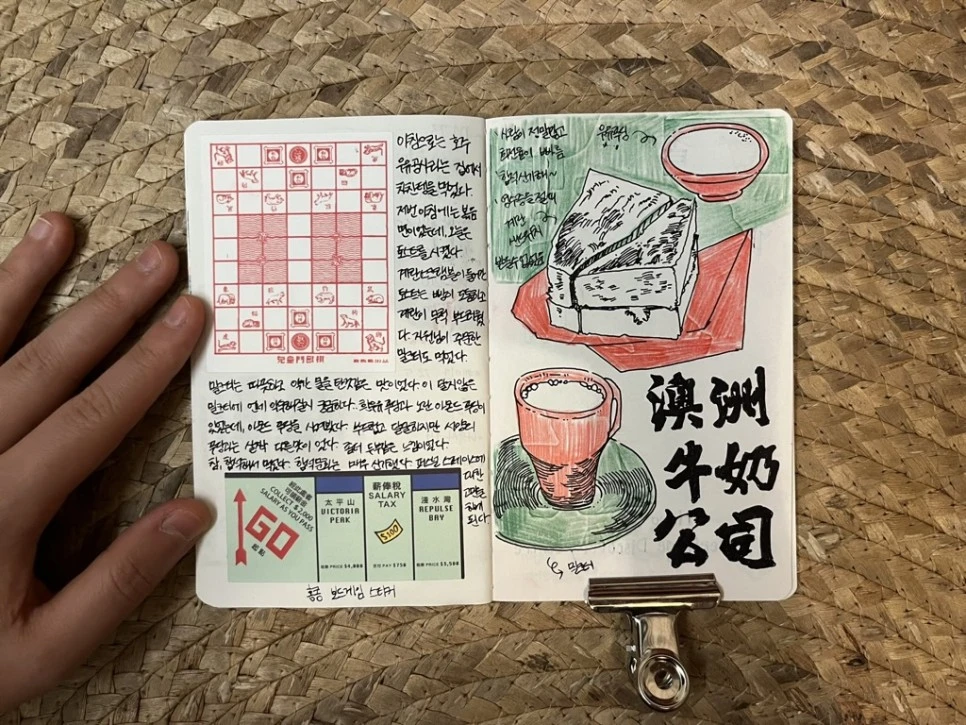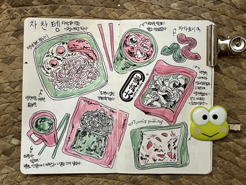 각자 차와 딤섬을 주문했다. 먹으면서 그림을 그리는 것이 로망이었기 때문에.. 빠르게 그림도 좀 그려봤다.