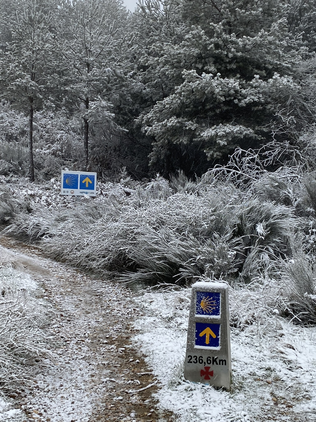 아침부터 날씨가 심상치 않다. 난생처음으로 보는 4월말에 내리는 강한 눈보라. 다음 목적지인 폰페라다까지 27km라는 꽤 먼 거리를 걸어야 하고 1500m 산꼭대기를 내려 가야한다.