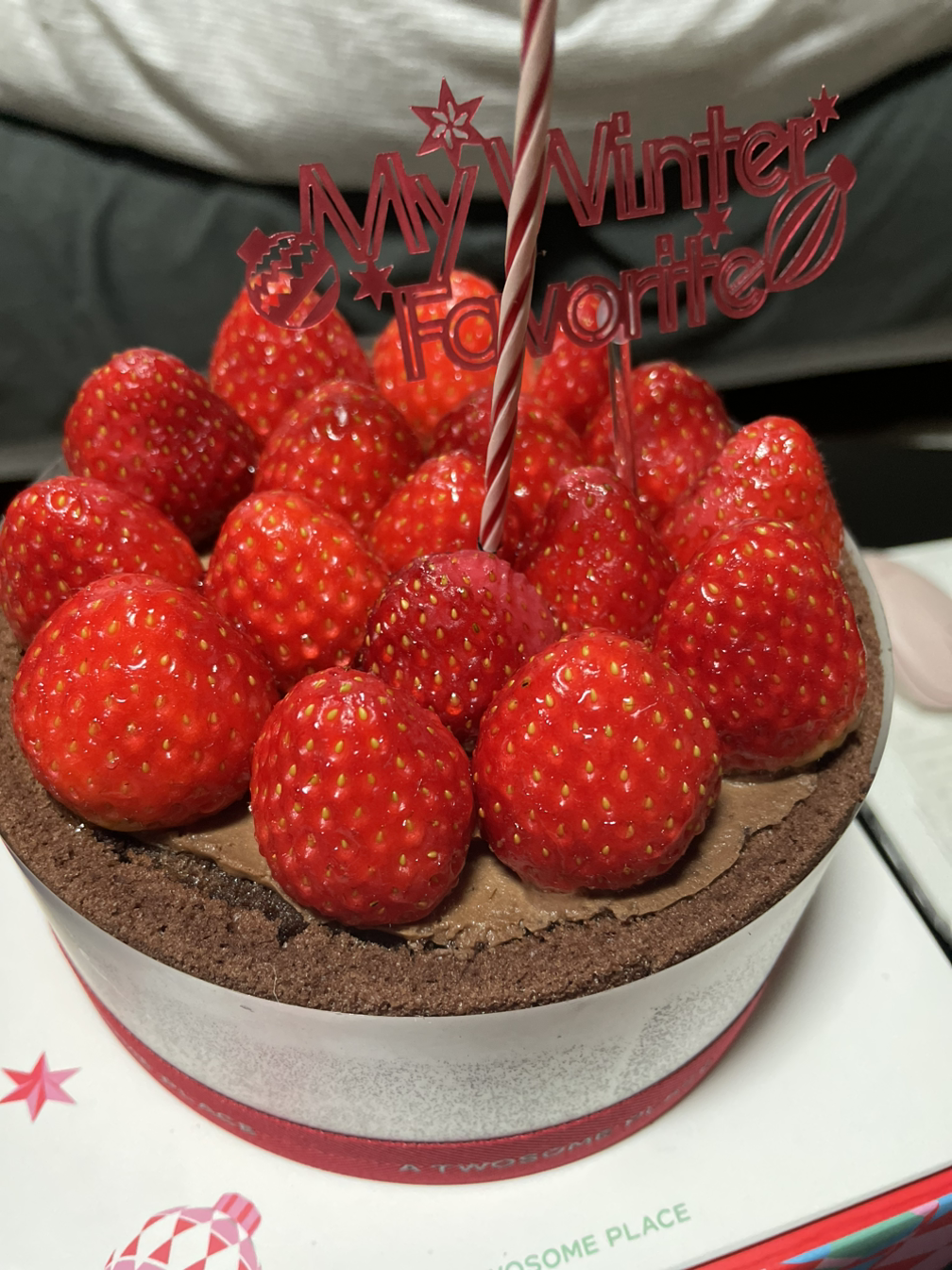 남편이 준비한 딸기 초콜릿 케이크는 나를 더 행복하게 해 주었다.