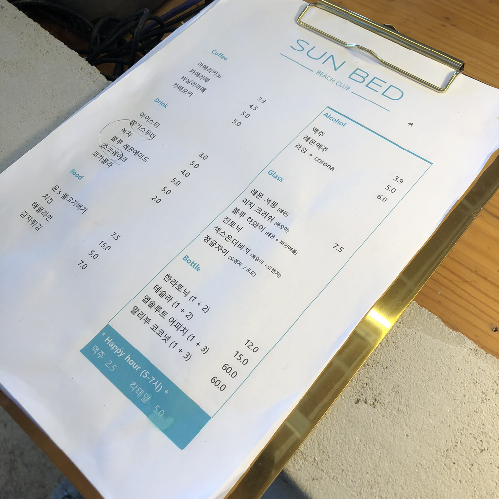 그리고 비밀의 해변 같았던 모사금 해수욕장의 이제 막 오픈하려고 준비 중이었던 "SUN BED" 비치바는