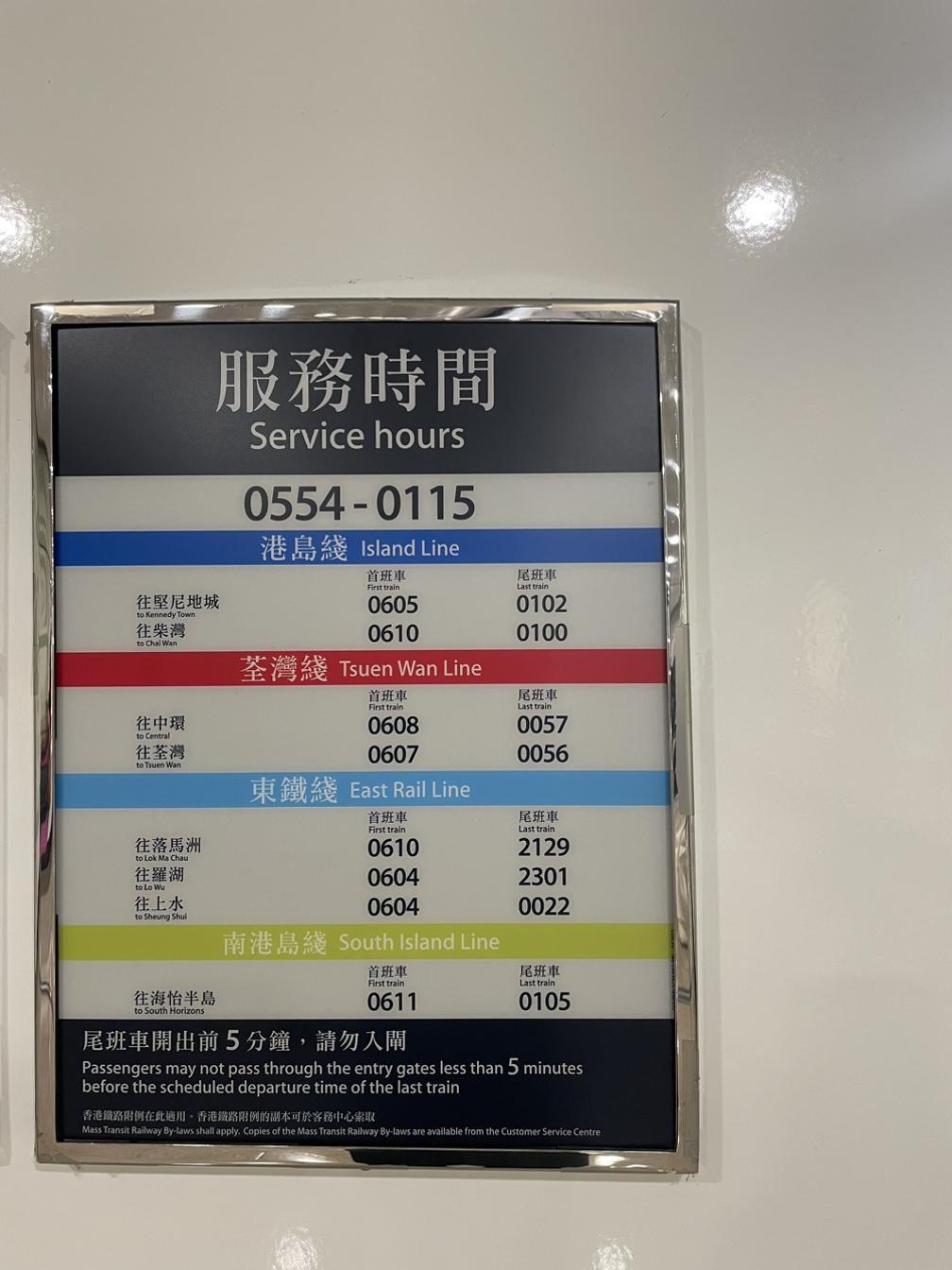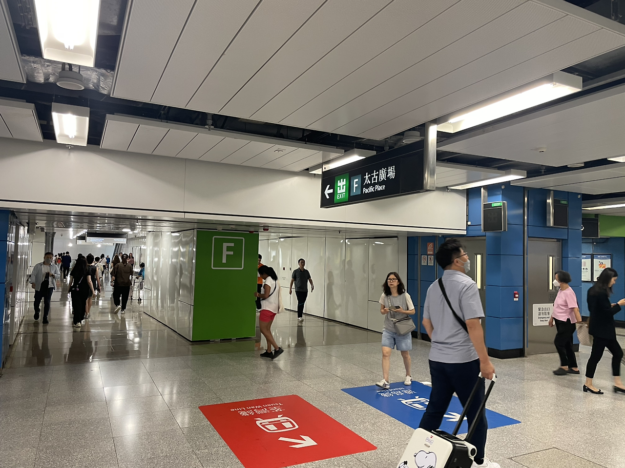 홍콩에서 Pacific Place (F 게이트)에 있는 호텔에 투숙하면 애드미럴티 역에서 내려서 Pacific Place(F 게이트) 이정표를 따라 들어오게 되면 Mall과 연결이 되어있고, 거기에 있는 모든 호텔은 그 몰과 중앙으로 다 연결이 되어있다. 홍콩역의 출구 표시는 녹색으로 EXIT라고 되어있다. 그리고 각 역마다 지하철 라인과 동일한 색상으로 이동할 수 있도록 표시가 되어있어서 어렵지 않다.