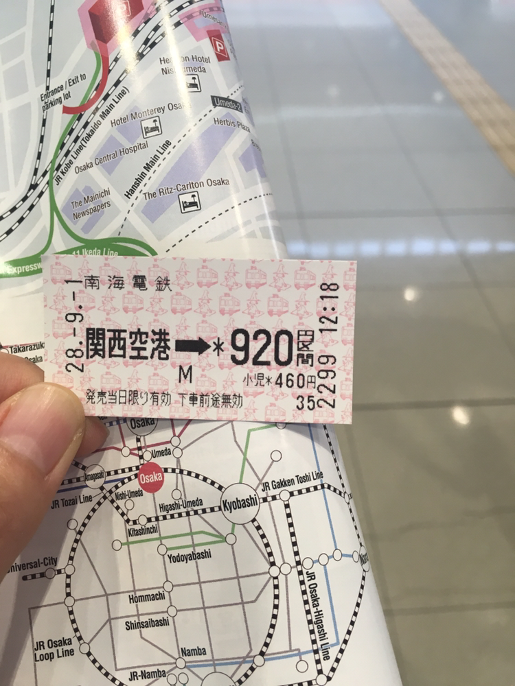 오사카 주유패스가 있어도 공항에서 난바까지는 별도로 티켓을 끊어야 한다.