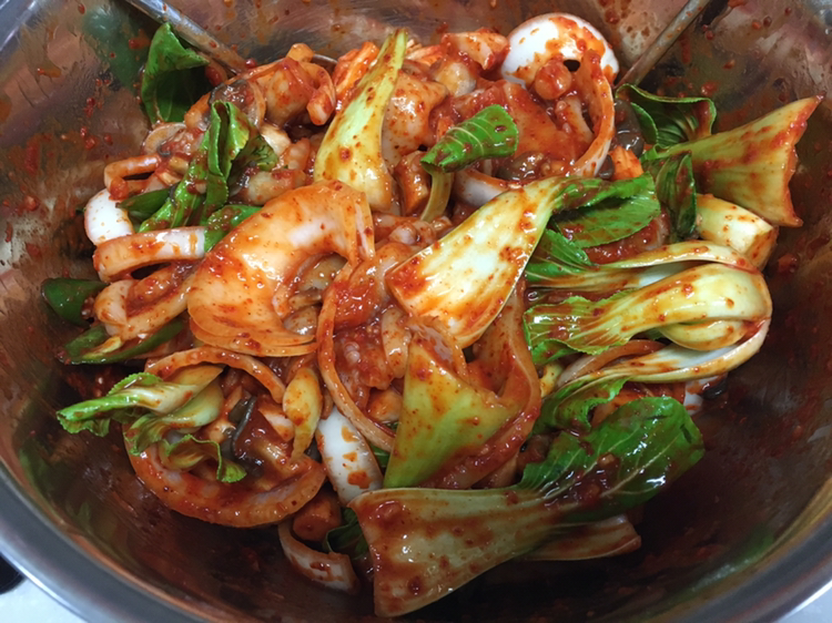 양념장과 비벼준다.