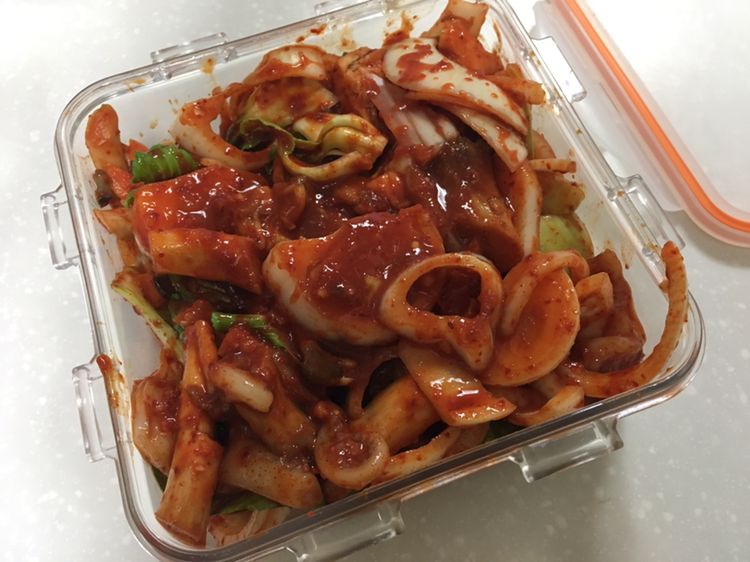 단백질이 많이 함유된 오징어로 반찬을 하기로 한다.