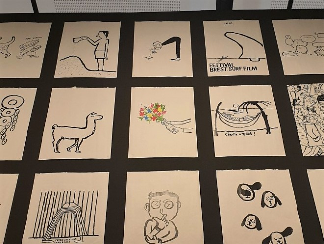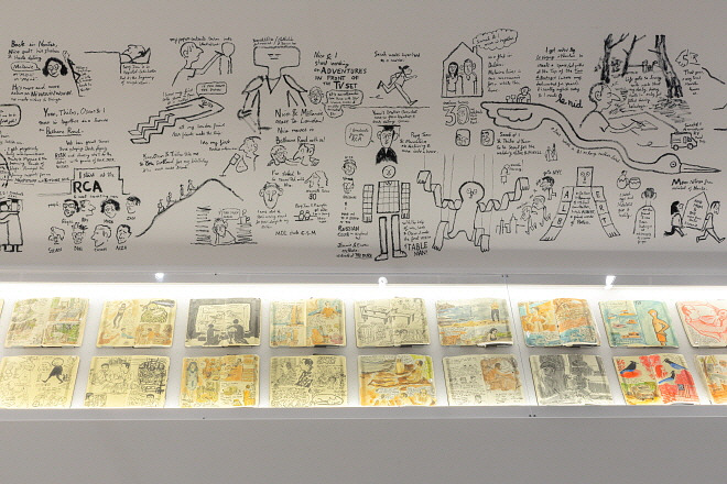 이 공간에서는 700개의 드로잉 작품을 볼 수 있다. 무려 사면이 모두 그림을 꽉 채워져있다. 원래는 한국에 보여주고 싶은 2000개의 그림이 있었는데, 그중 700개만을 선정해서 전시했다고 한다.