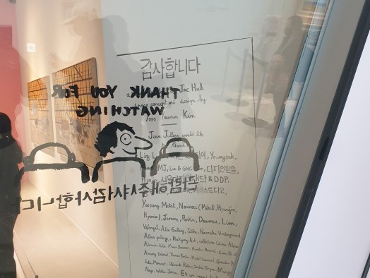 이후 전시장 입구에서부터 작품 설명이나 벽에 그림을 하나하나 그린 것, 바닥에 "작품 안내선을 지켜주세요"를 하나하나 직접 쓴 것을 보곤 전시에 대한 줄리앙의 진심이 느껴졌다. 거의 처음 느껴보는 아티스트의 전시에 대한 정성과 애정이었다.