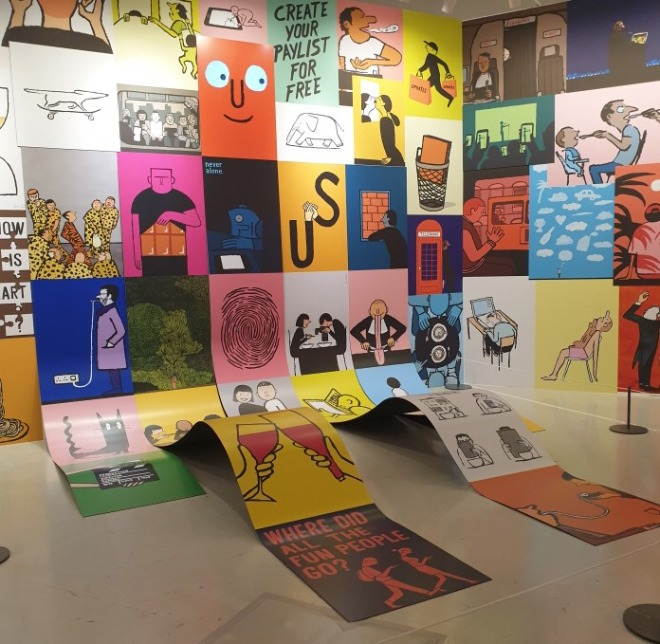 어디선가 본 적 있는 귀여운 그림체, 세계적인 그래픽 아티스트 장 줄리앙이 한국 서울 DDP에서 인생 첫 회고전을 연다. 전 세계적으로 인기가 많은 만큼 DDP 전시장엔 많은 사람들이 모여있었다.