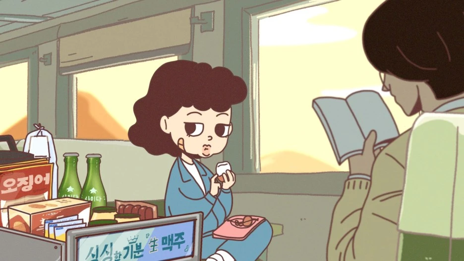 시간은 과거로 돌아가 주름살이 없어지고 머리가 풍성해져 젊은 남녀의 모습으로 바뀐 엄마와 아빠, 그 둘은 달리는 기차 안 맞은편에 앉아있다. 삶은 계란을 먹다가 완벽하게 잘생긴 아빠의 얼굴을 보곤 목이 막힌 그녀. 아빠의 얼굴은 청순만화 남주인공으로 바뀌었다. 볼이 붉어진 엄마를 보고 아빠는 사이다를 권한다.