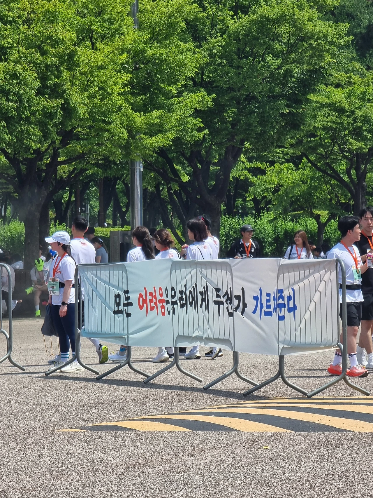 마라톤은 나와 싸우는 스포츠였다. 5k 지점이 넘으면서 발바닥엔 물집이 잡혀 신경이 쓰이기 시작했고, 출발 전부터 뜨겁게 내리쬐는 햇빛은 숨을 더 헐떡이게 만들었다. 그러나 별 수 있나. 급수대에서 열을 내리며, 응원단과 러너분들과 파이팅!! 을 외치며 고통은 자기 최면으로 잊은 채 계속 뛰었다.