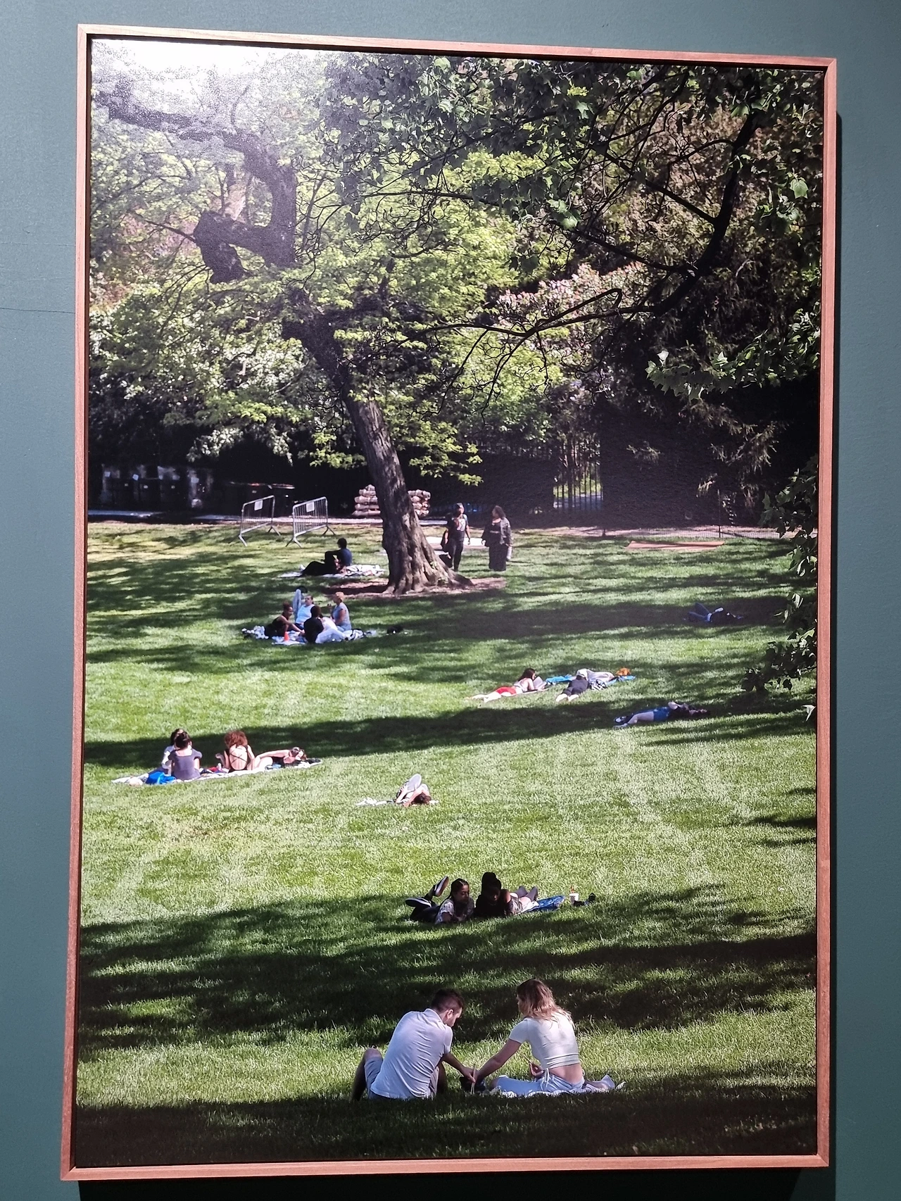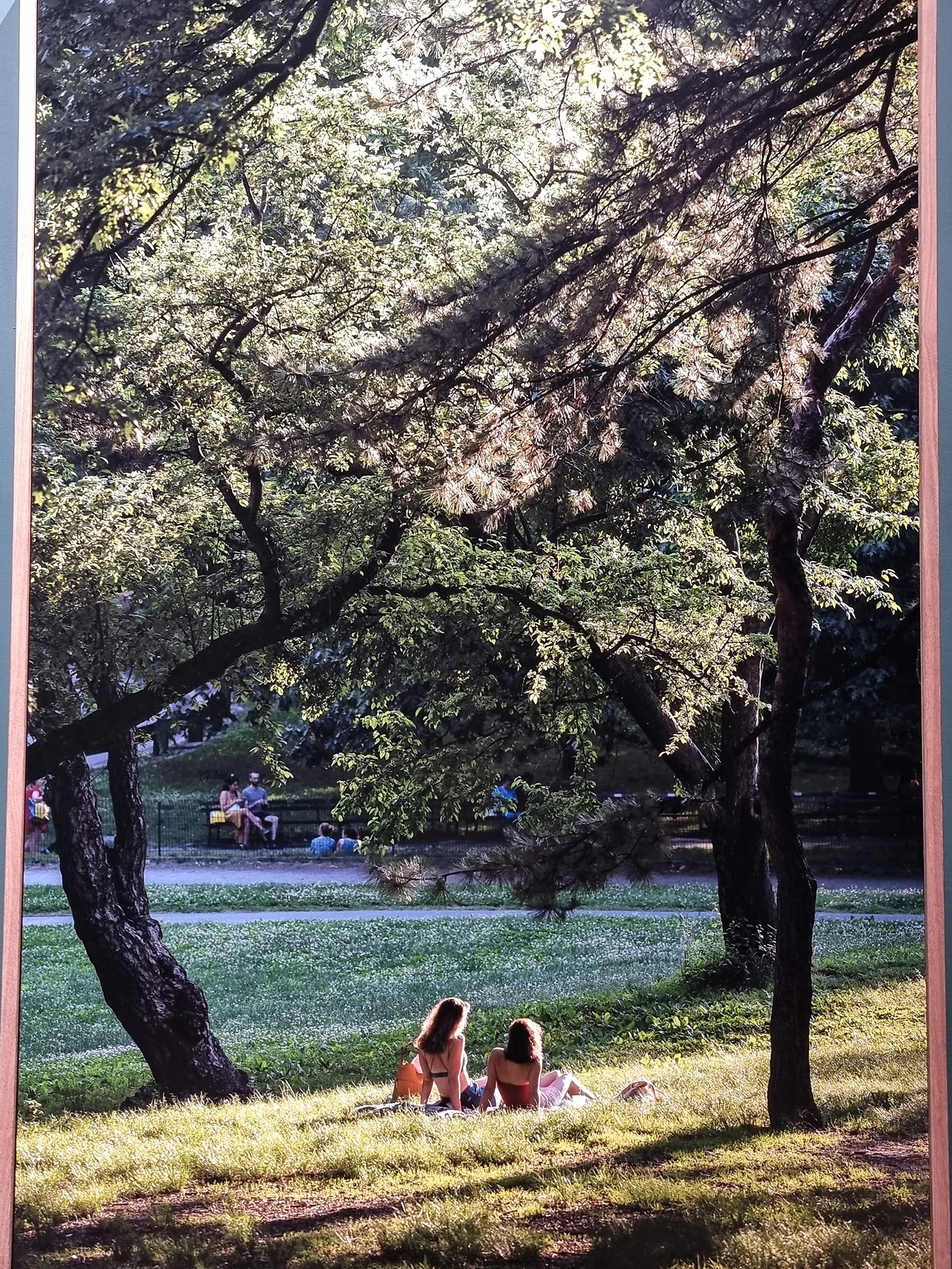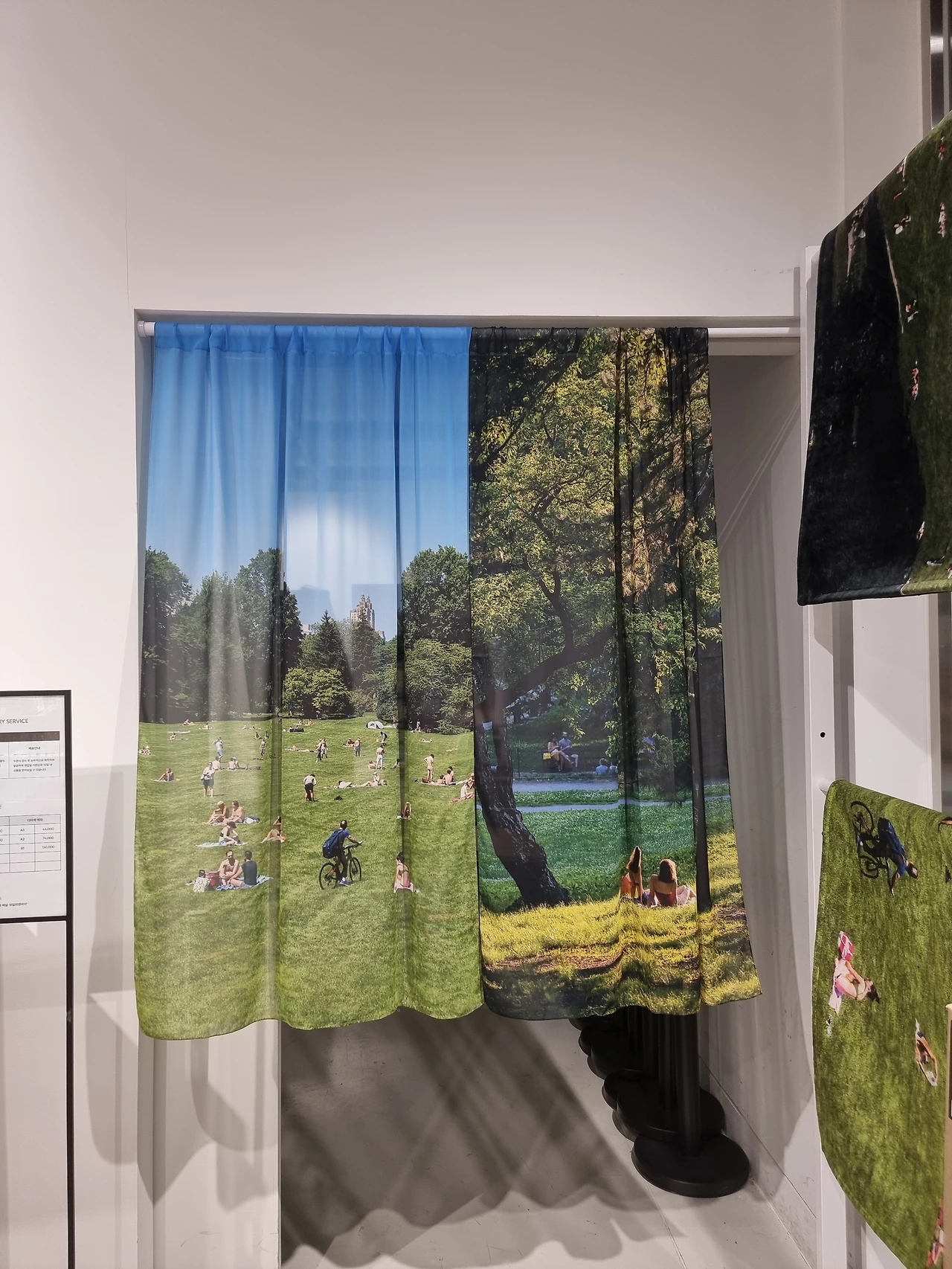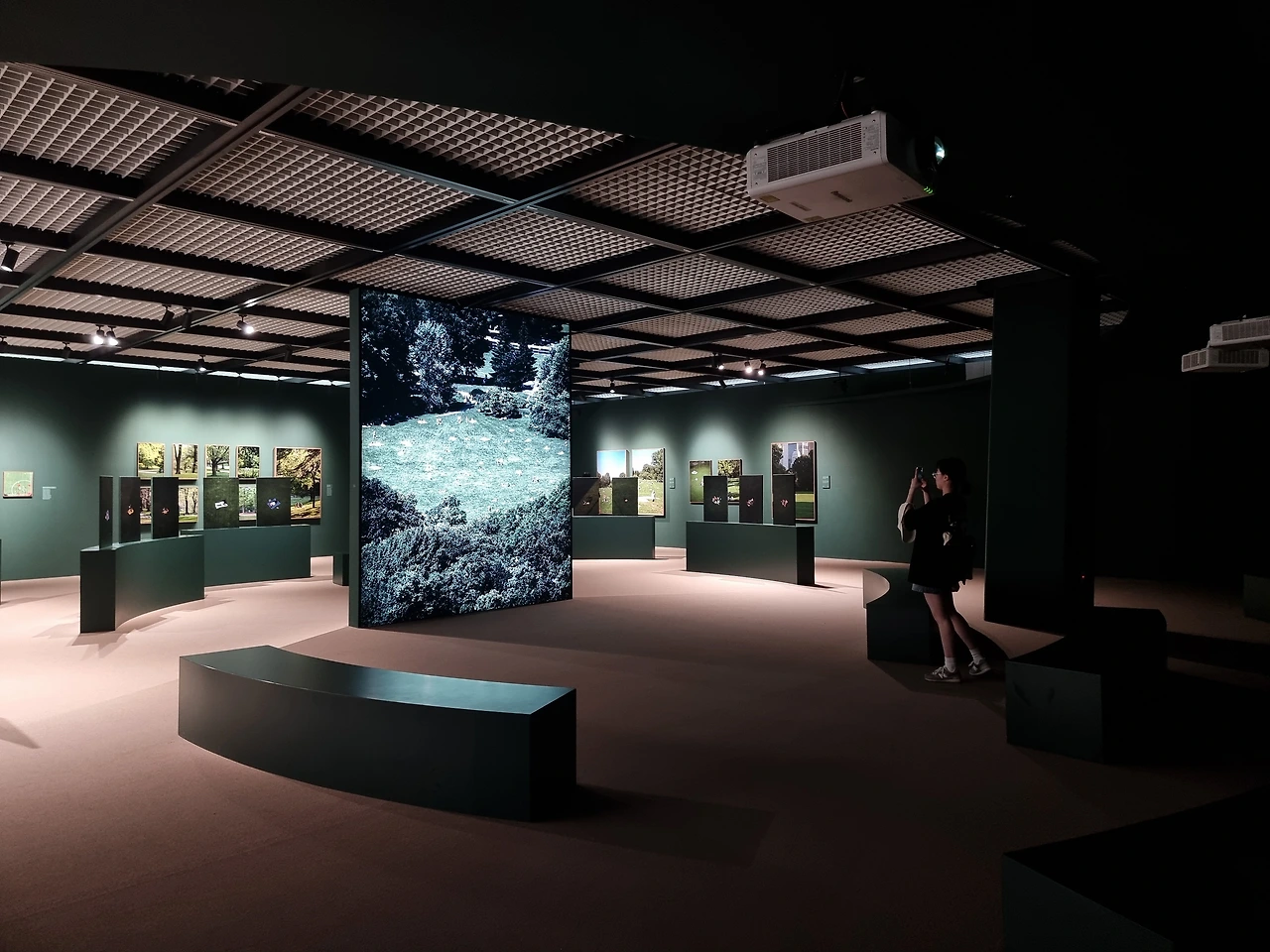 5. 공간 전체를 녹색으로 페이팅하고, 중앙에 동그랗게 사진을 전시하고, 한쪽 벽면 전체엔 공원에서 쉬고 있는 영상을 스크린으로 구성해 내가 마치 센트럴파크에 한가운데 있는 듯한 느낌을 받았다.