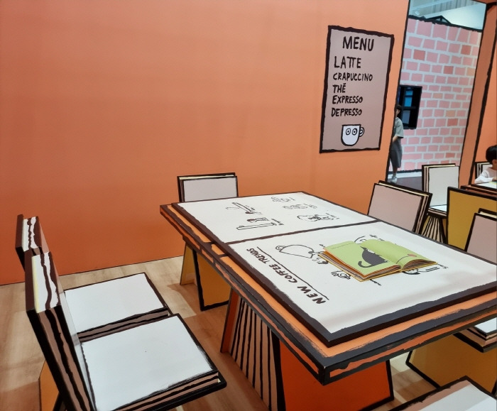 페이퍼시티에서는 조화로운 색감들과 실제 크기의 건물과 오브제들, 자동차까지 구현돼있다. 실제 건물에 들어가서 카페엔 어떤 메뉴가 있고, 어떤 테이블에서 쉬는지, 도서관에서는 어떤 책을 읽고 갤러리에서는 무슨 그림을 그리는지 엿볼 수 있었다. 굴뚝같은 동그란 공간에서는 벽에 수많은 드로잉들이 붙어있어 그림을 보는 재미도 있었다. 페이퍼 시티를 거닐며 페이퍼피플의 일상을 세세하고 귀엽게 담아내는 작가의 창의력에 감탄을 할수밖에 없었다.