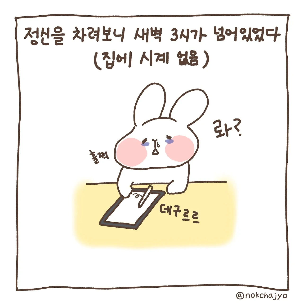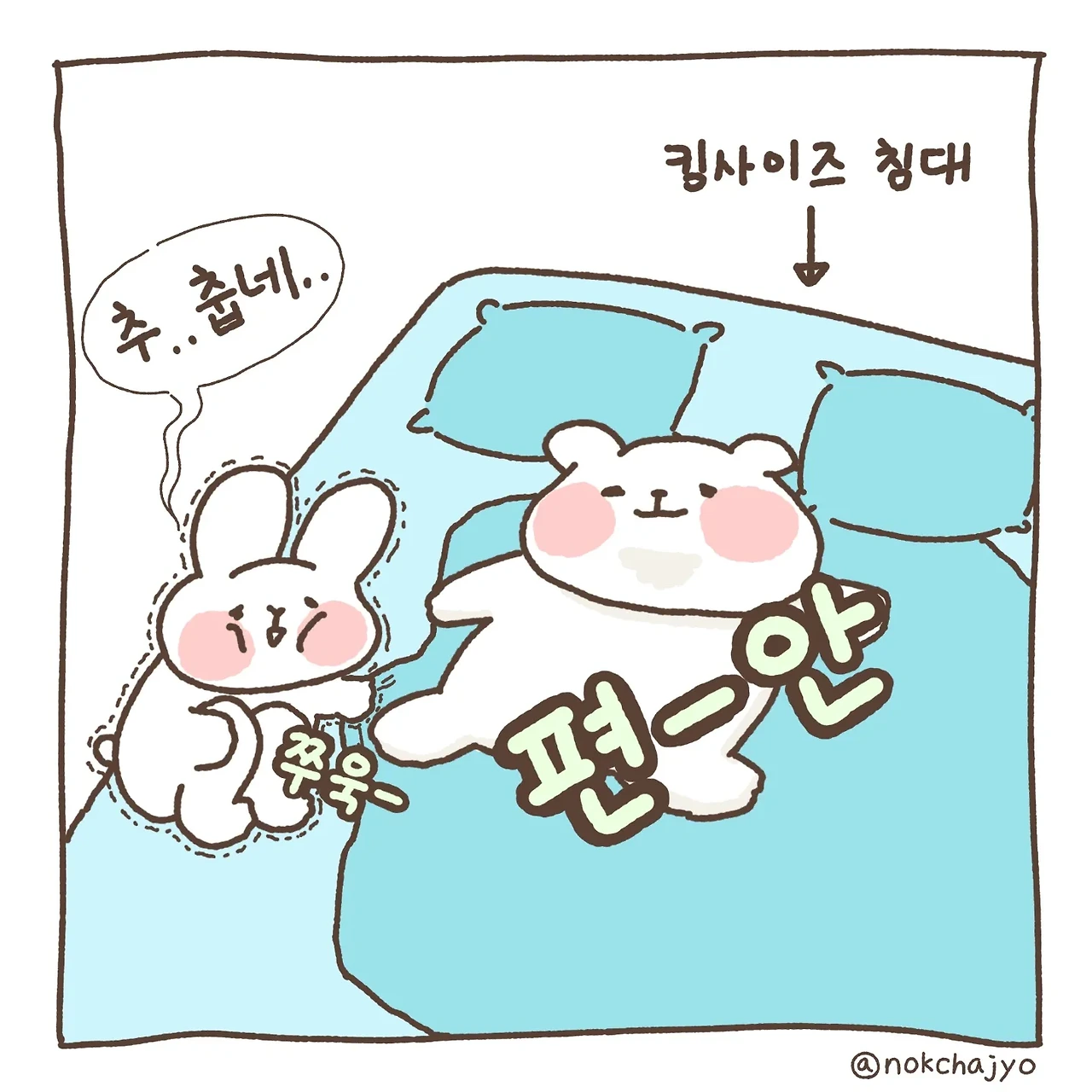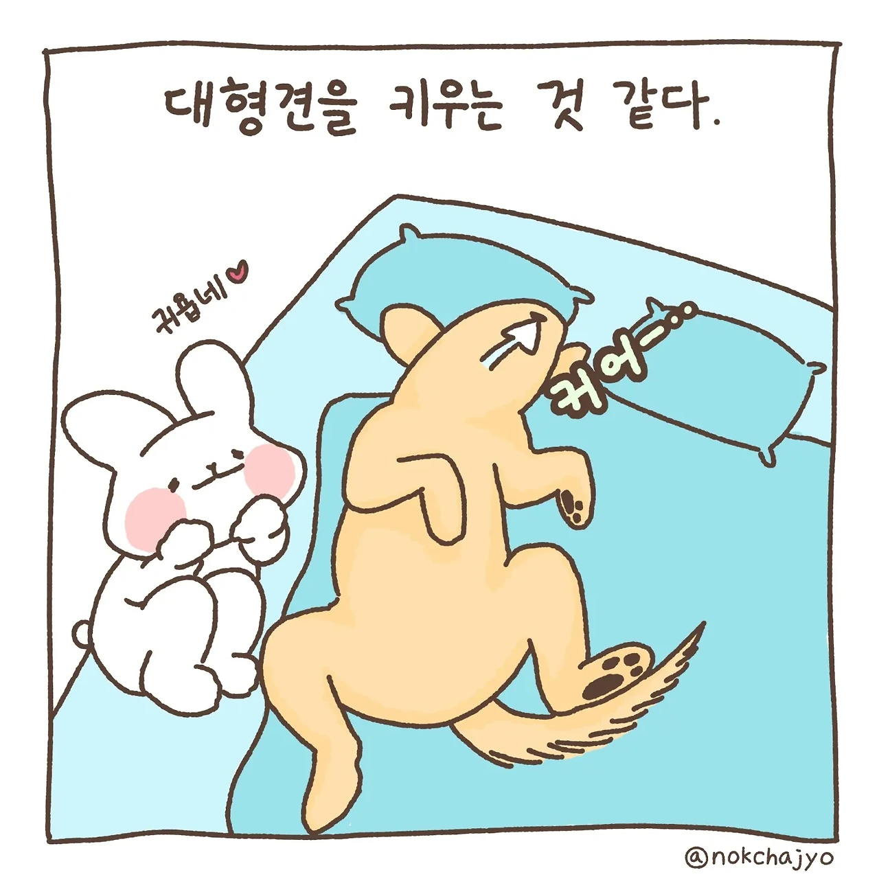 하루의 따뜻함 녹차죠입니다 우당탕탕 신혼 일상 만화에요! 귀여운 토끼와 미니메추리의 반려 집사랍니다~ 주 2회 이상 연재합니다