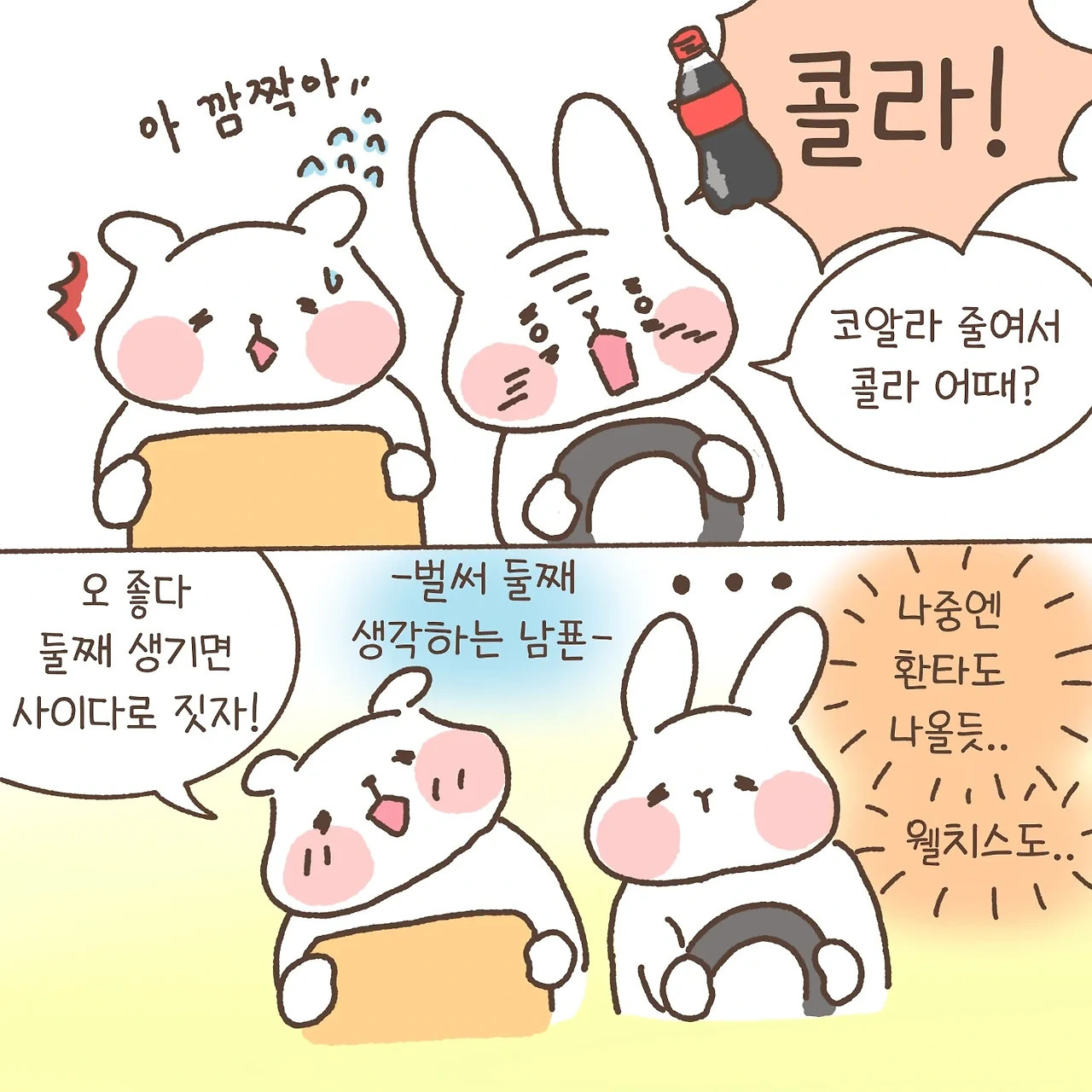 하루의 따뜻함 녹차죠입니다 우당탕탕 신혼 일상 만화에요! 귀여운 토끼와 미니메추리의 반려 집사랍니다~ 주 2회 이상 연재합니다