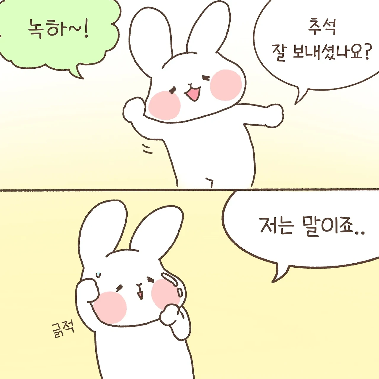 하루의 따뜻함 녹차죠입니다 우당탕탕 신혼 일상 만화에요! 귀여운 토끼와 미니메추리의 반려 집사랍니다~ 주 2회 이상 연재합니다