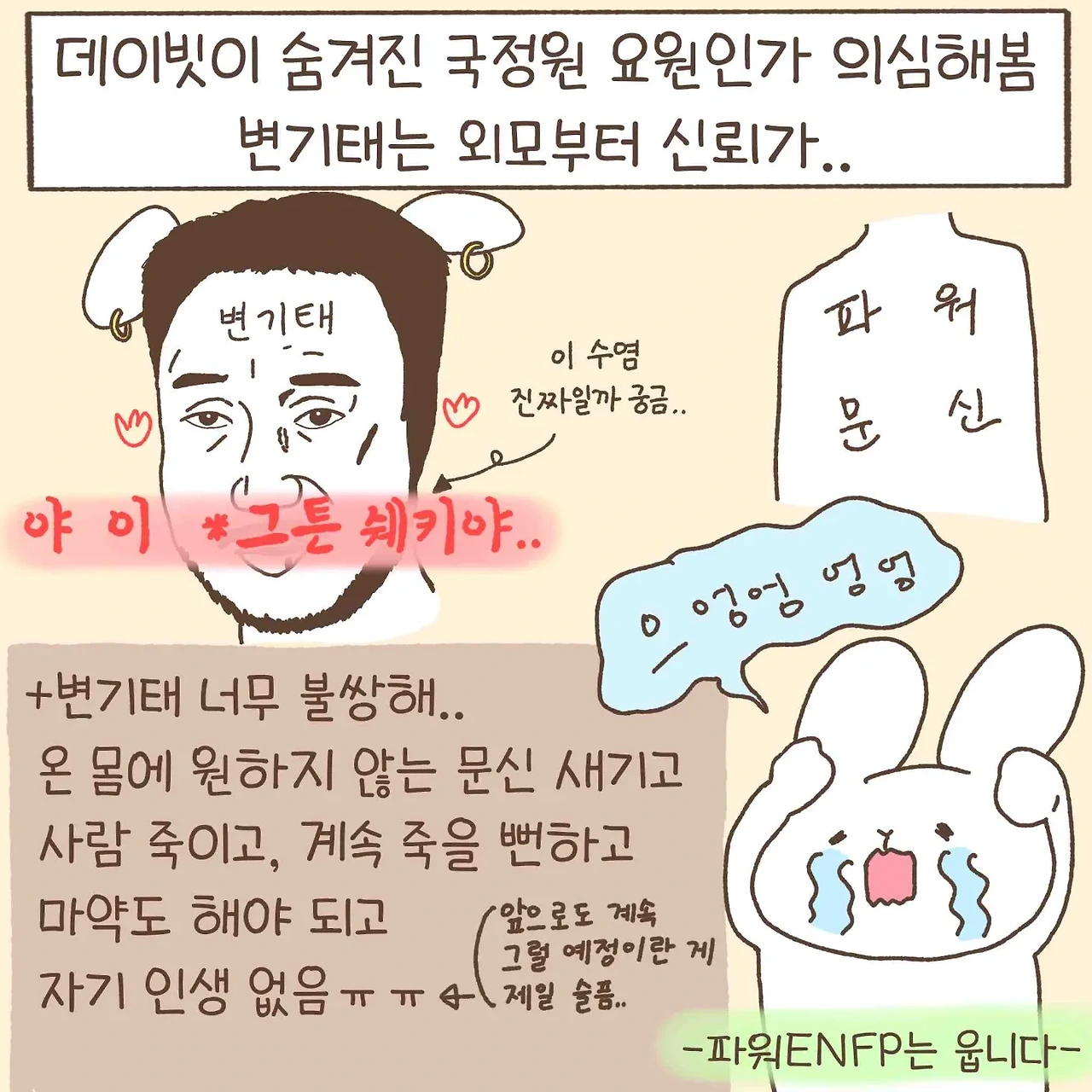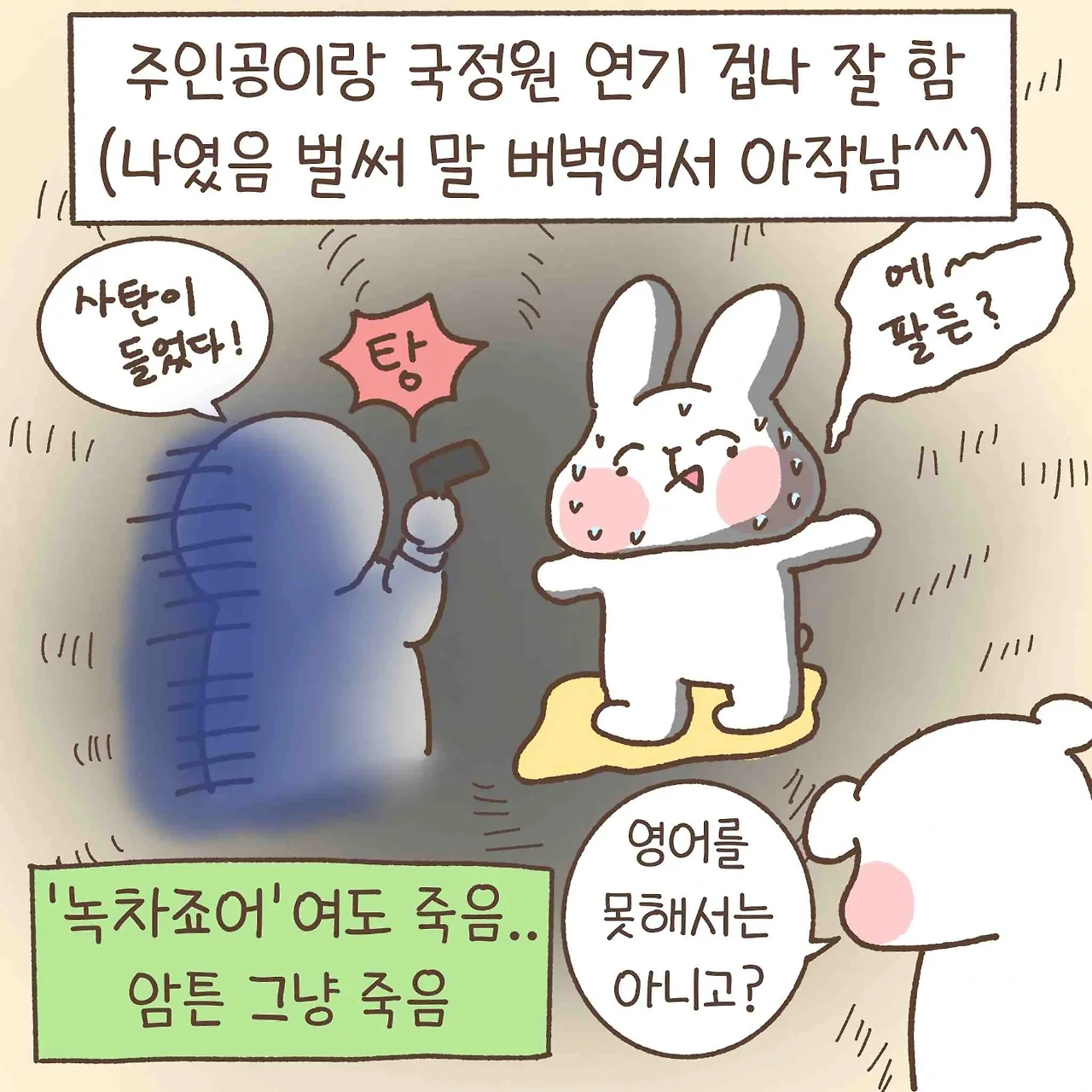 당시에 수리남을 보고 나서 느낀 점들을 만화로 그렸습니다. 진짜 변기태 너무 불쌍하고.. 저 사람들 그 뒤로 어떻게 살았을까 궁금하고 내가 거기 투입되면 어땠을까 상상의 나래를 한참 펼쳤었네요. 정말 국정원분들 대단하십니다.