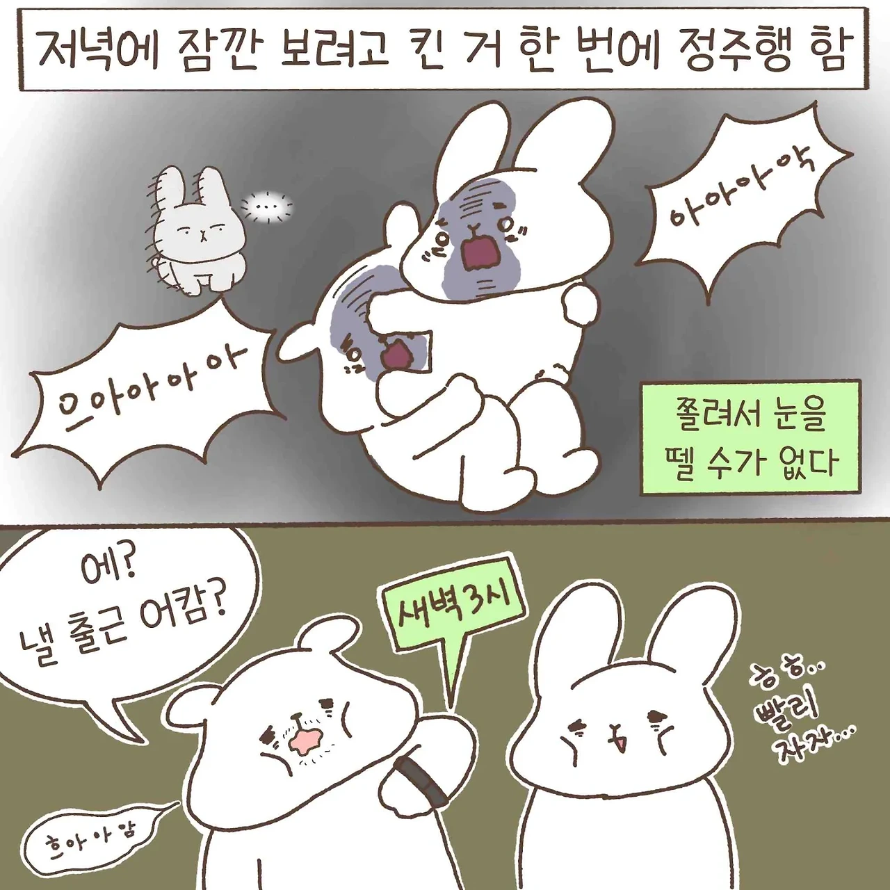 하루의 따뜻함 녹차죠입니다 우당탕탕 신혼 일상 만화에요! 귀여운 토끼와 미니메추리의 반려 집사랍니다~ 주 2회 이상 연재합니다