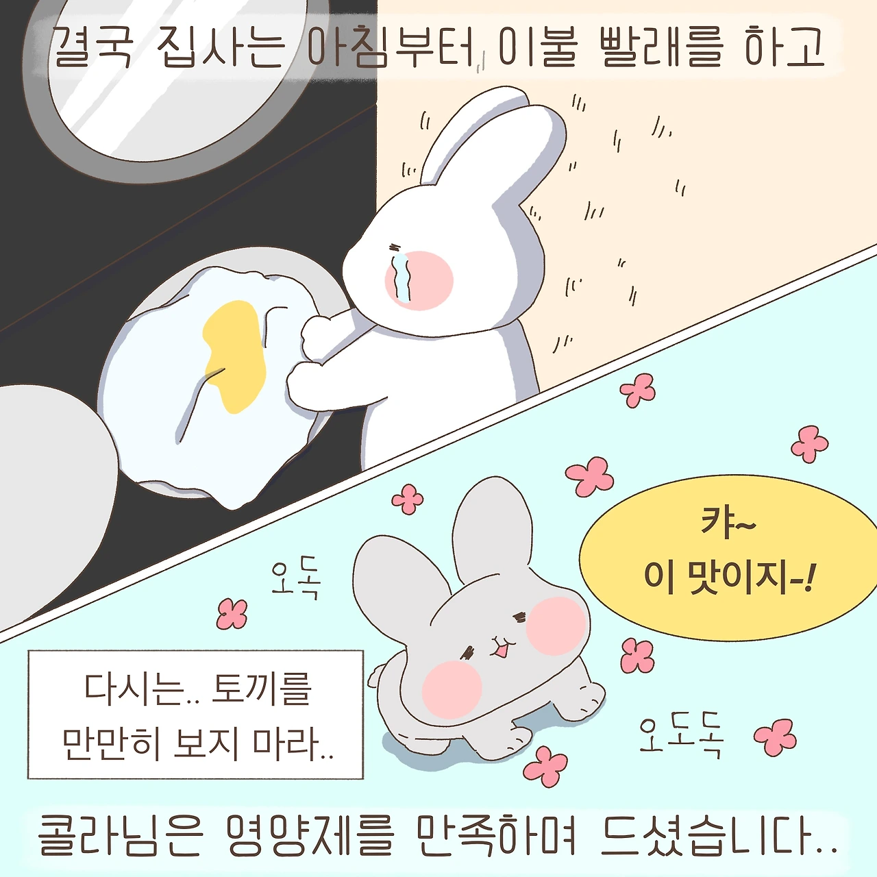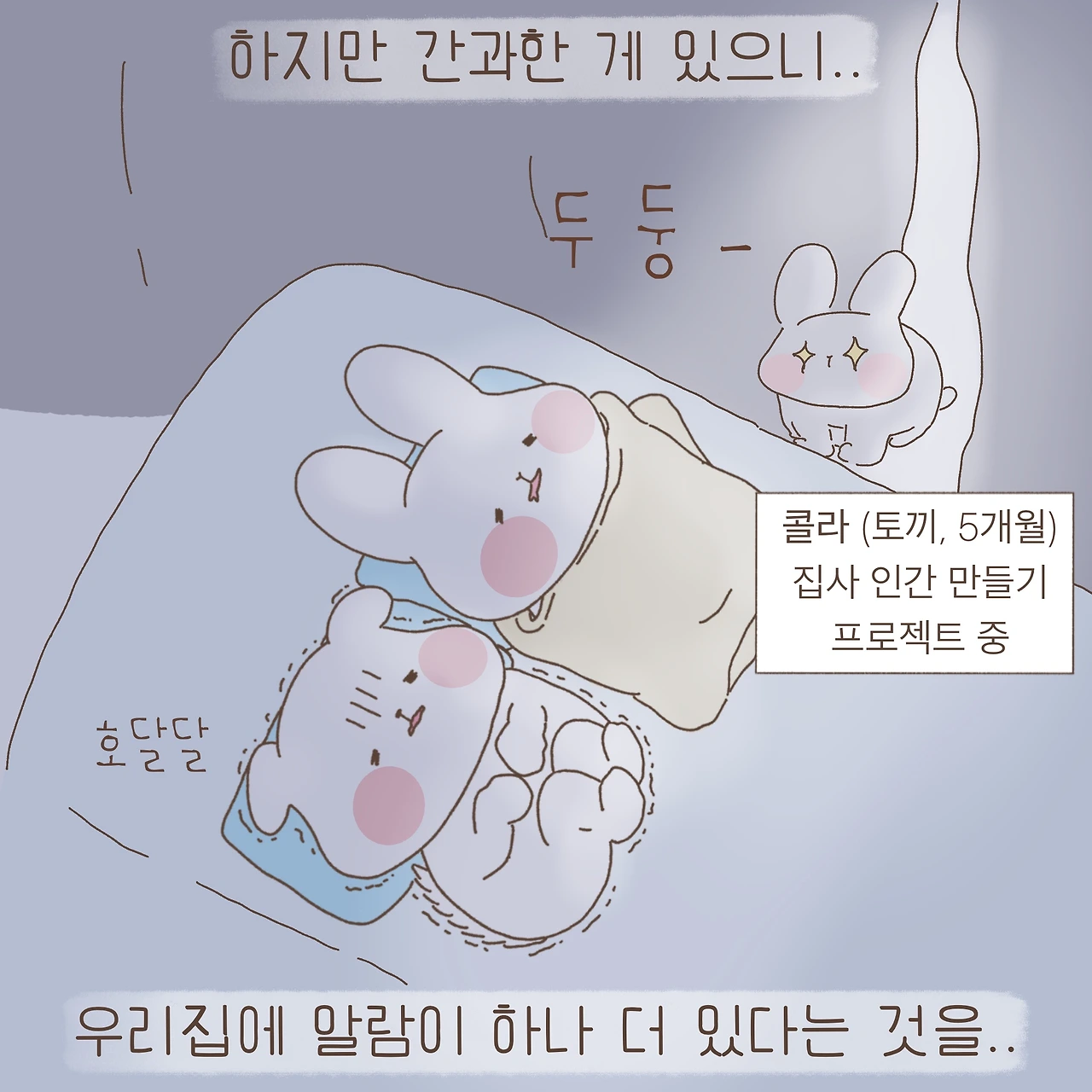제가 너무 익숙해지다 보니 콜라가 물고 뜯어도 세상모르고 자니까 콜라는 최후의 수단으로 소변을... 바로 기상하는 마법..