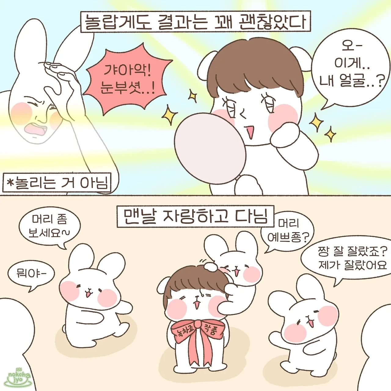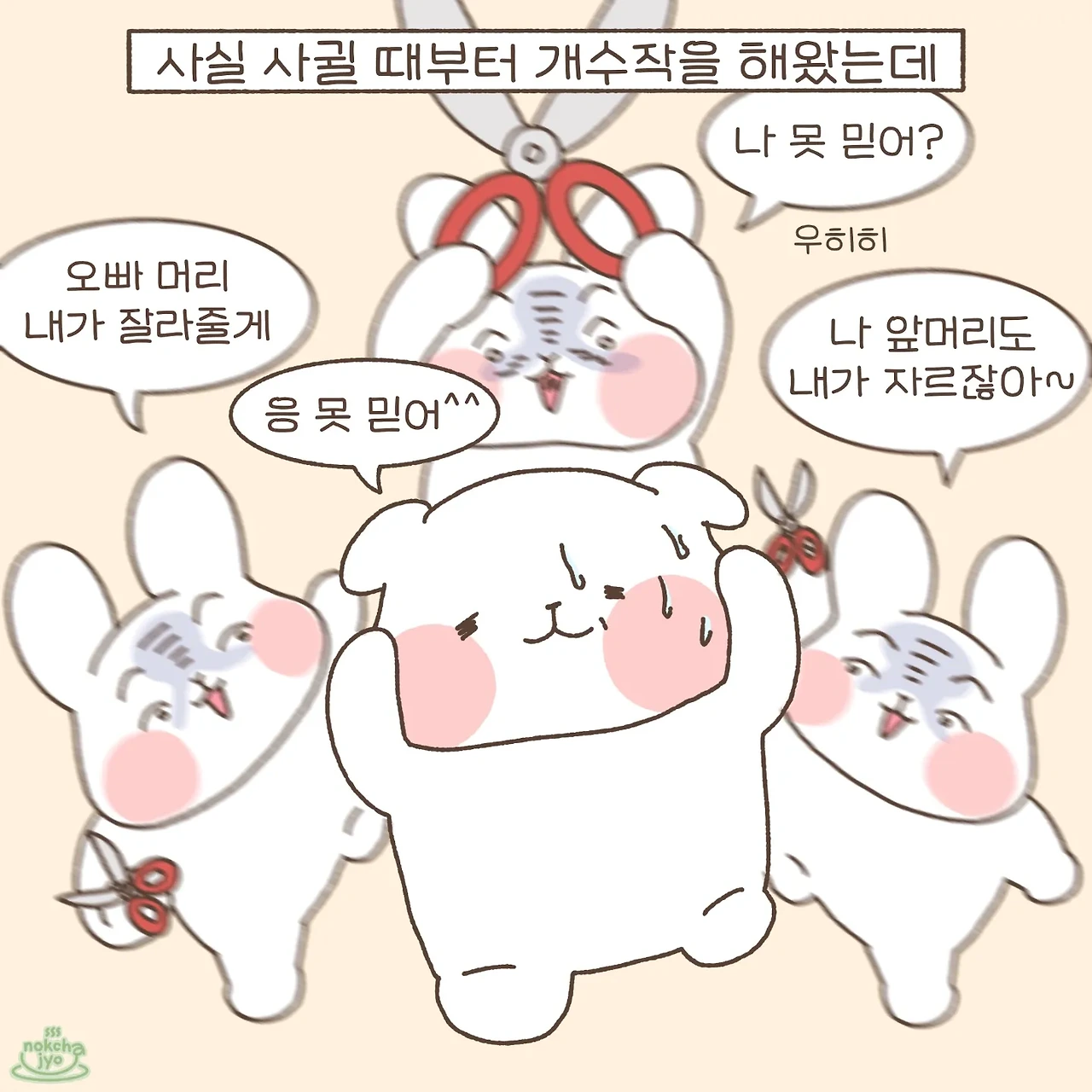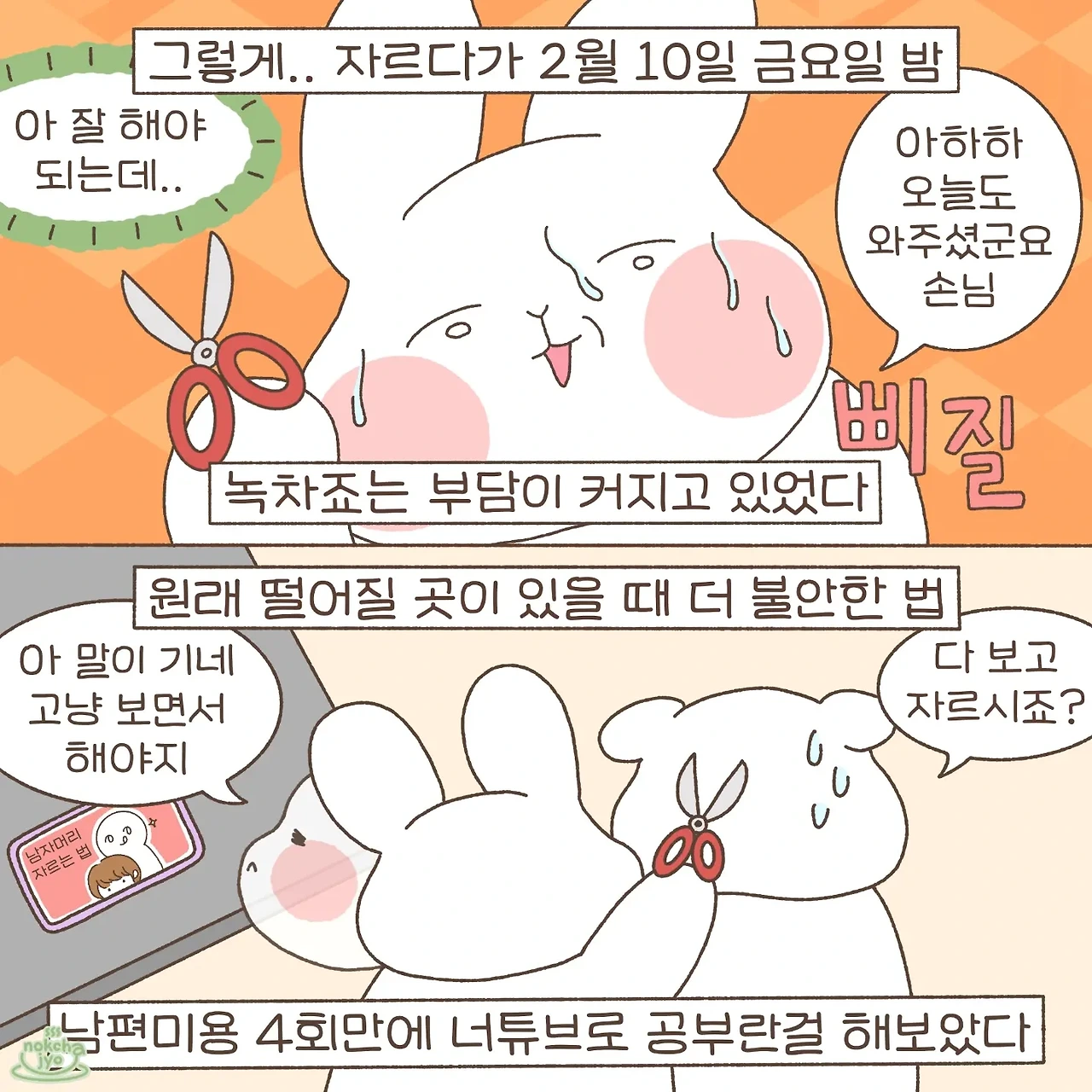 처음 시작은 생각 없이 잘랐으나 막상 성공하고 나니 다음 머리 자를 때의 부담은 더해졌습니다..