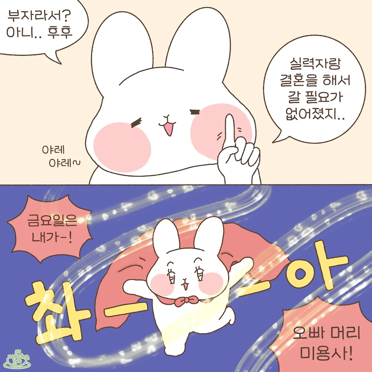 하루의 따뜻함 녹차죠입니다 우당탕탕 신혼 일상 만화에요! 귀여운 토끼와 미니메추리의 반려 집사랍니다~ 주 2회 이상 연재합니다